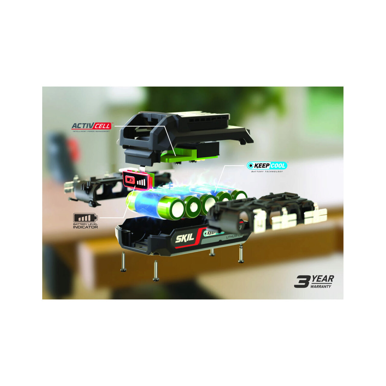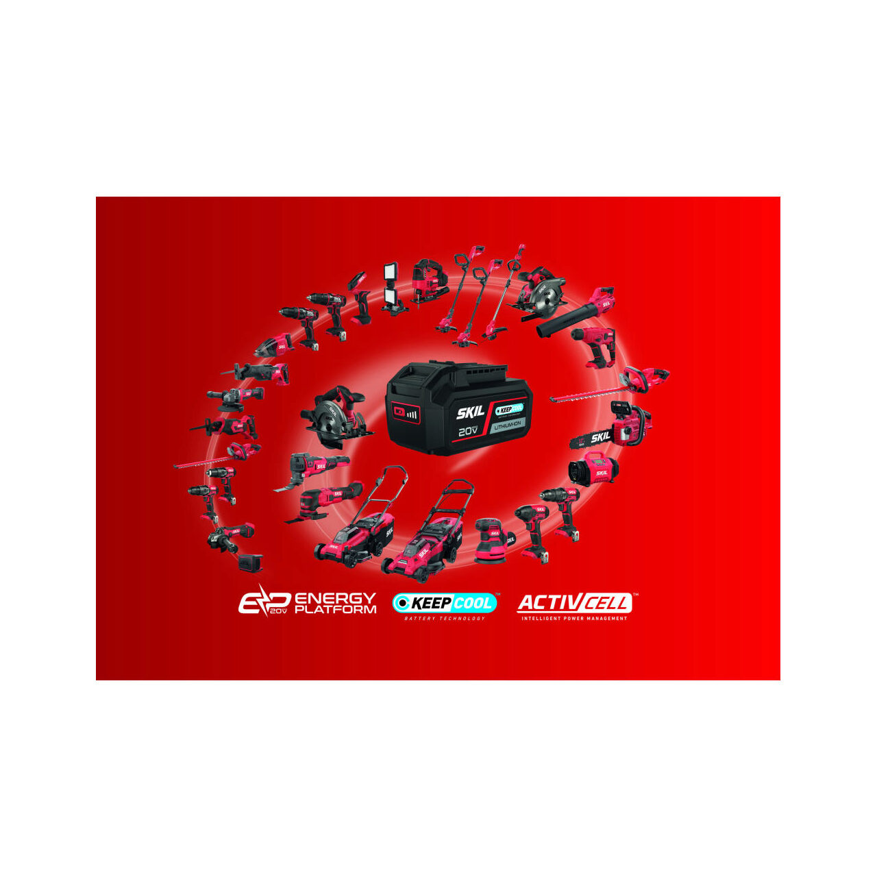 Acest acumulator puternic de „20V Max” (18 V) baterie 5,0 Ah cu indicator LED pentru baterie oferă tehnologia superioară litiu-ion, ceea ce înseamnă că nu are efect de memorie, este fără descărcare proprie şi este întotdeauna gata de utilizare. O parte din SKIL „Energy Platform”: SISTEMUL flexibil pentru acumulatori. Tehnologia pentru acumulator „Keep Cool™” asigură un timp de funcţionare de 25% mai lung şi 2x mai multă durată de viaţă. Tehnologia „ActivCell™” funcţionează pentru a optimiza utilizarea energiei, pentru a preveni supraîncălzirea şi pentru a maximiza performanţa acumulatorului.