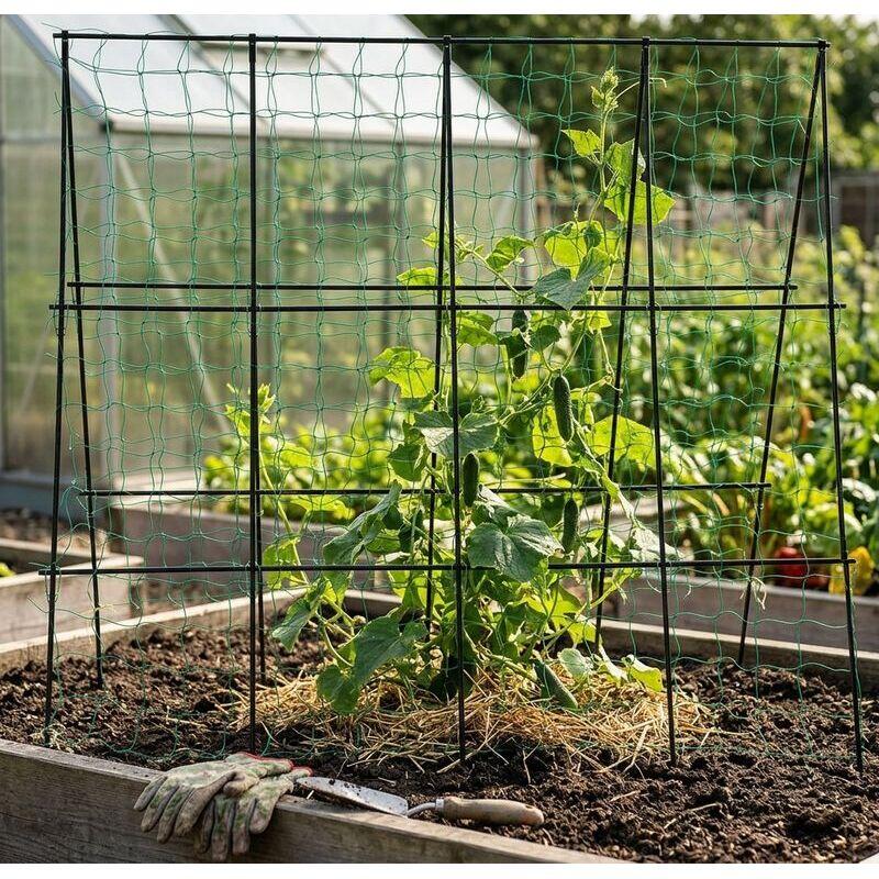 - Reprezinta o solutie practica si eficienta pentru gradinarii care doresc sa sustina cresterea verticala a plantelor precum castravetii, fasolea sau mazarea. Acest sistem ajuta nu doar la sustinerea fizica a plantelor, ci contribuie semnificativ si la sanatatea si productivitatea lor, facilitand in acelasi timp o intretinere mai usoara a culturii.