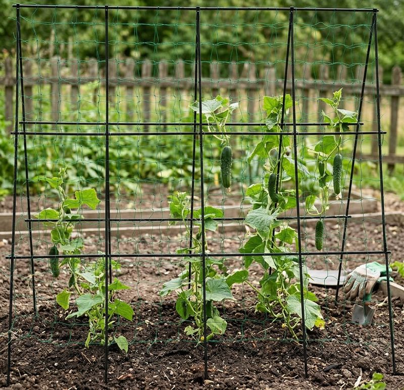 - Sustinere pentru plante cataratoare: Permite cresterea verticala a culturilor precum castravetii, fasolea sau mazarea