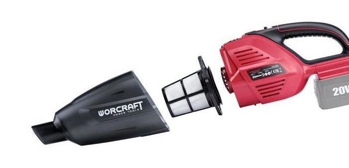 Aspirator auto, 20V Li-ion, cu acumulator 2 Ah, incarcator, filtru HEPA, Worcraft