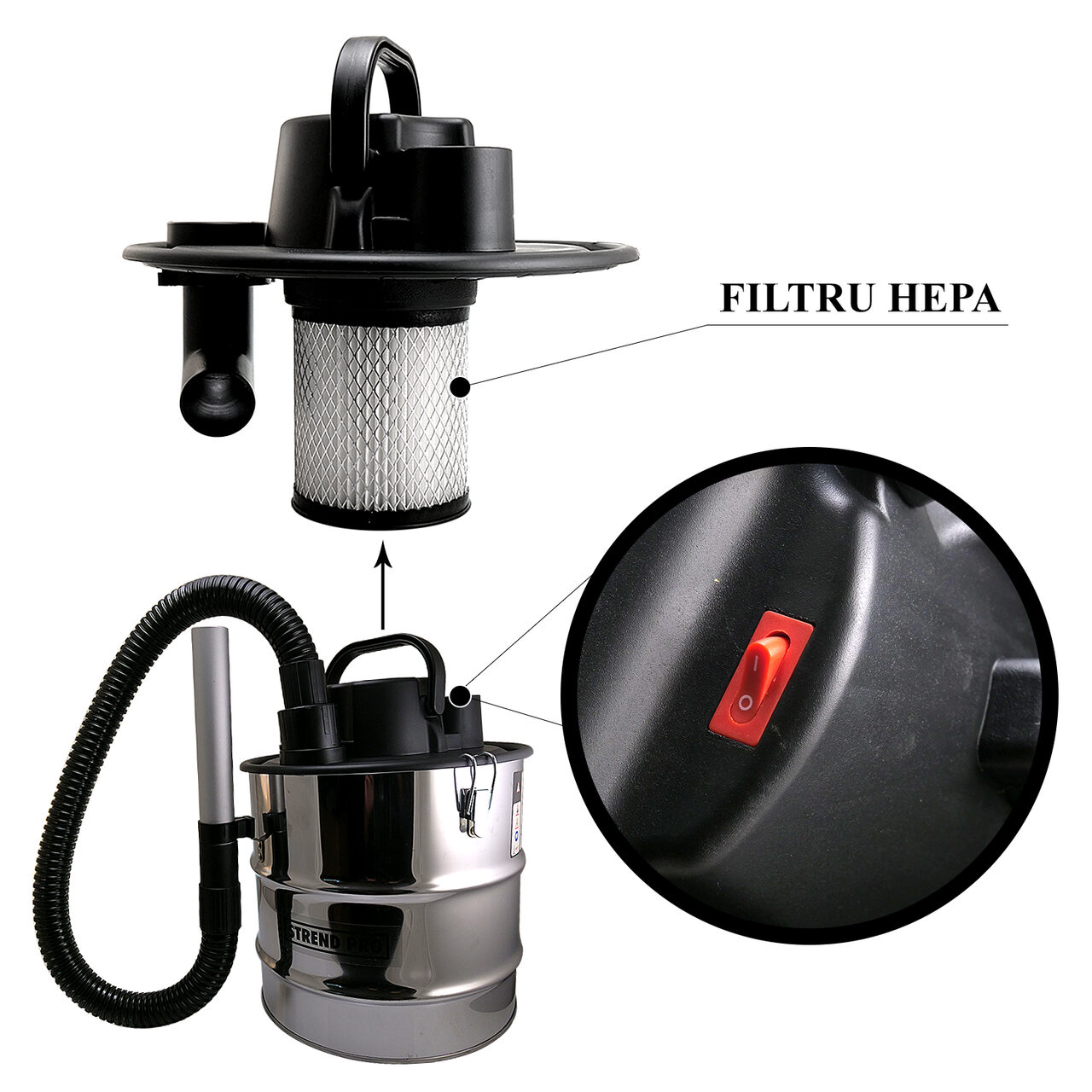 Aspirator cenusa, 1000 W, filtru HEPA, 18 L, Strend Pro