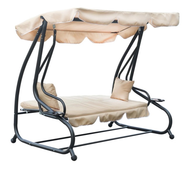 Balansoar gradina, 3 locuri, crem, 210x120x170 cm, functie pat, Dorina