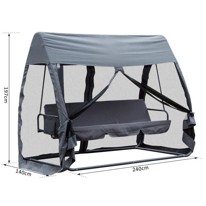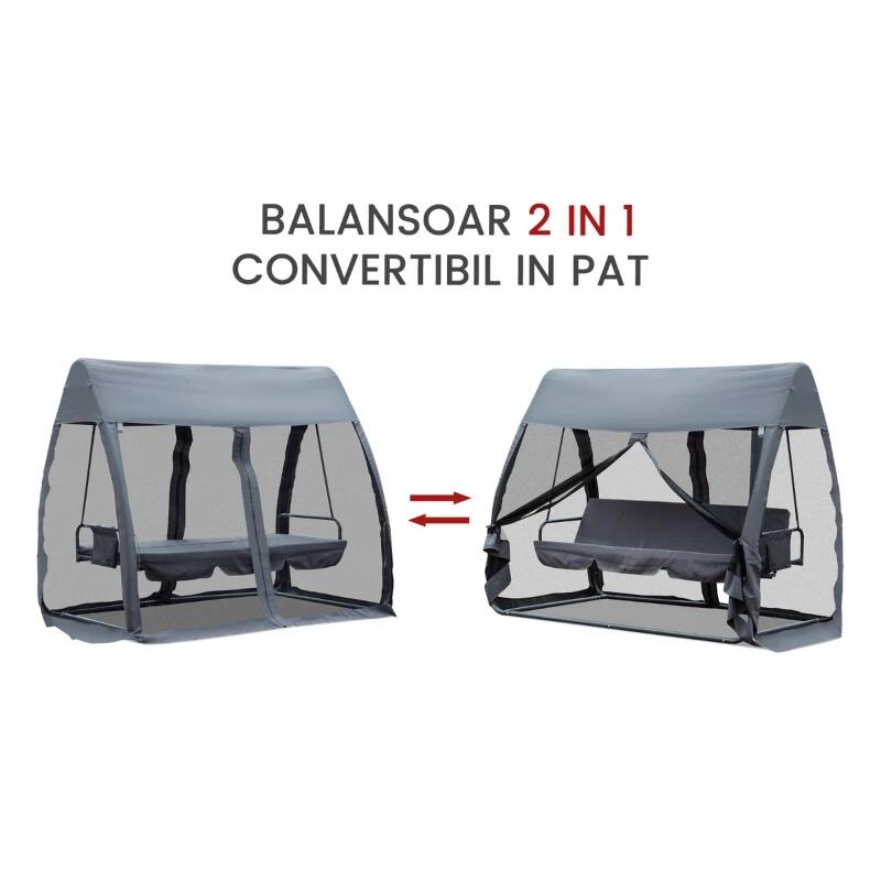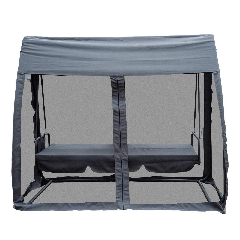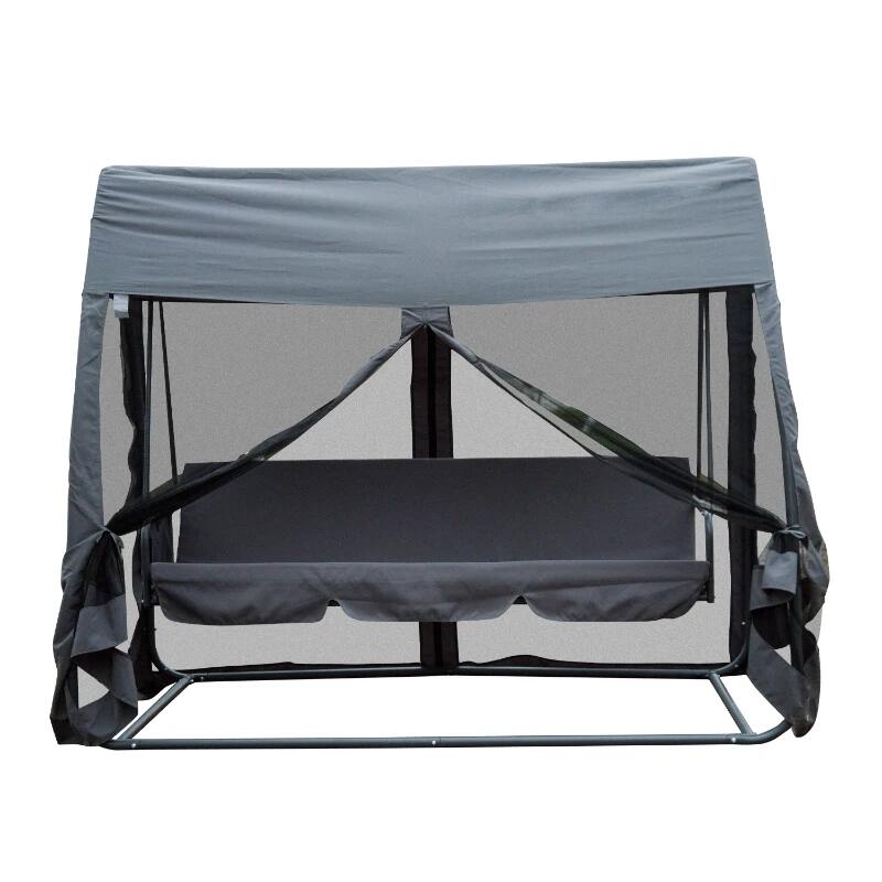 Balansoar gradina, 3 locuri, cu plasa insecte, gri inchis, 240x140x197 cm, functie pat, max 300 kg, Monaco