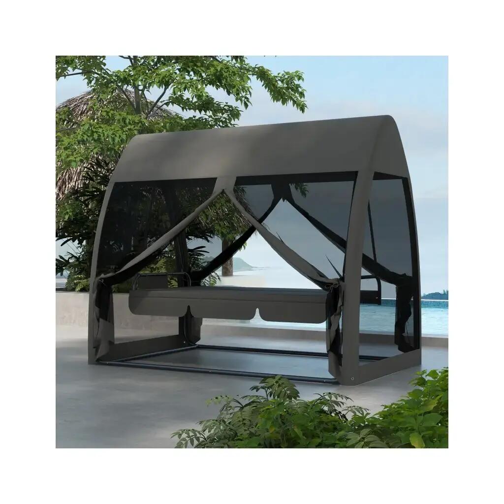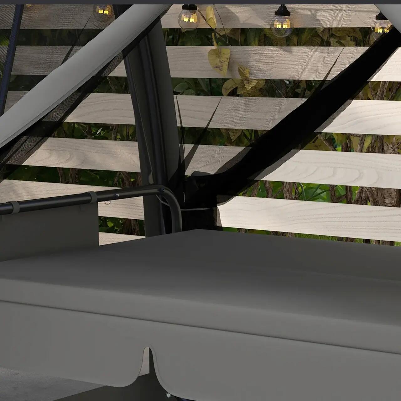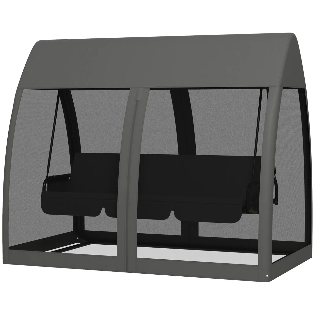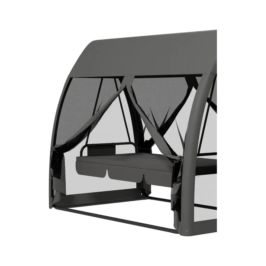 Balansoar gradina, 3 locuri, cu plasa insecte, gri inchis, 240x140x197 cm, functie pat, max 300 kg, Monte Carlo