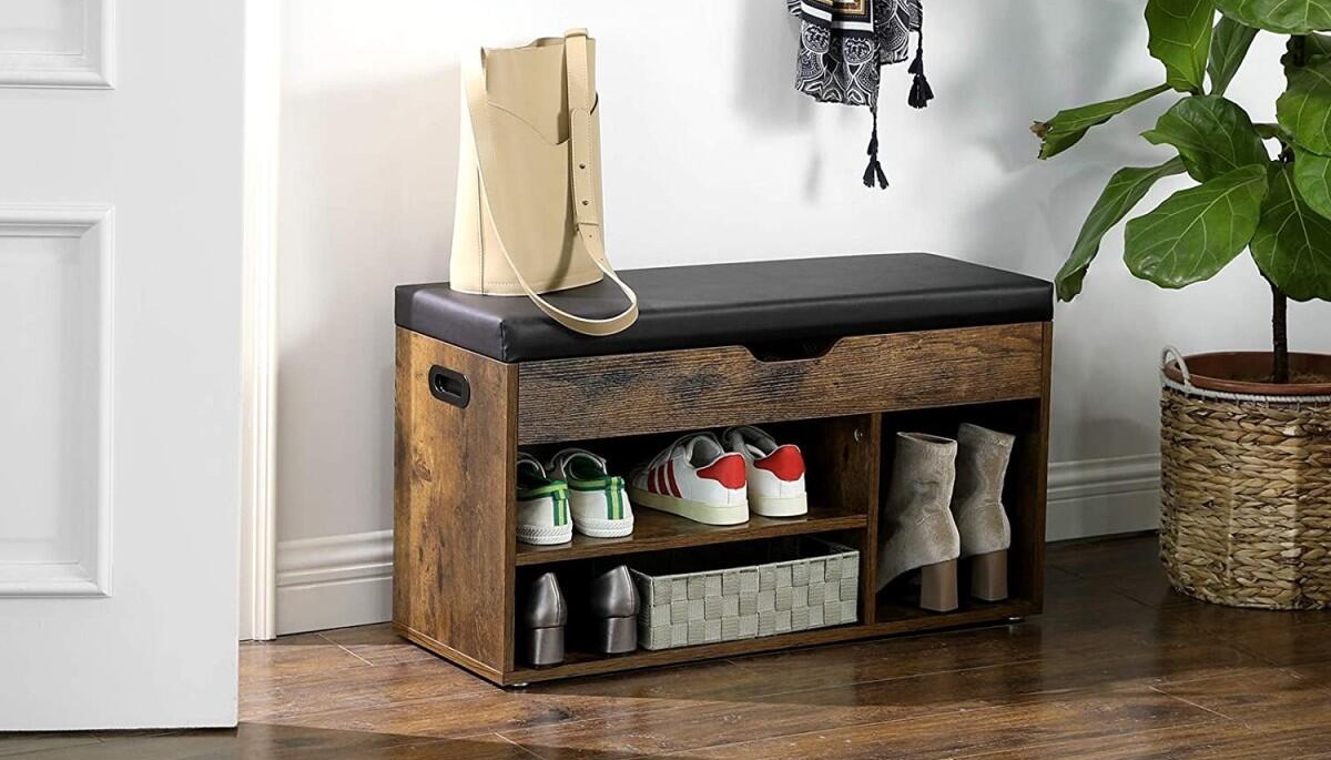 - Dulapul are trei rafturi pentru incaltaminte care pot gazdui chiar si pantofii de marimi mari. Spatiul generos permite chiar si depozitarea de esarfe, fulare, palarii, manusi si alte obiecte mici datorita compartimentului interior pe care il puteti accesa ridicand bancheta.