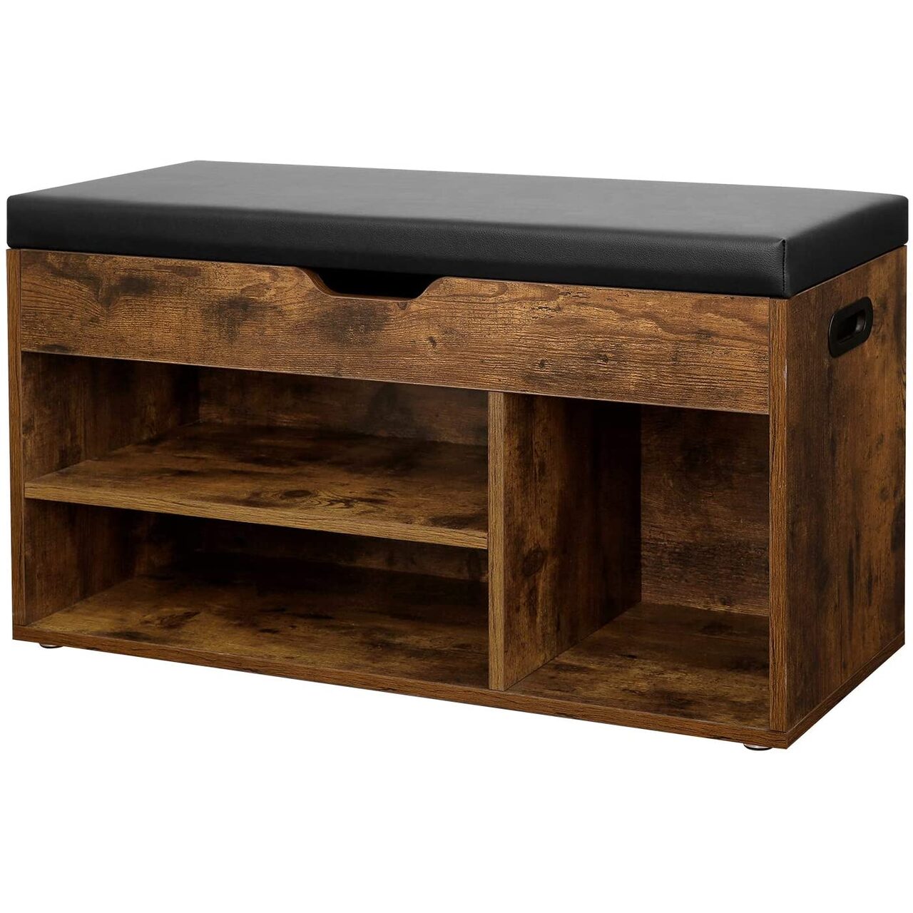 Banca depozitare incaltaminte, pantofar pentru hol, Artool, pal, 3 rafturi, maro rustic inchis, 80x30x44 cm