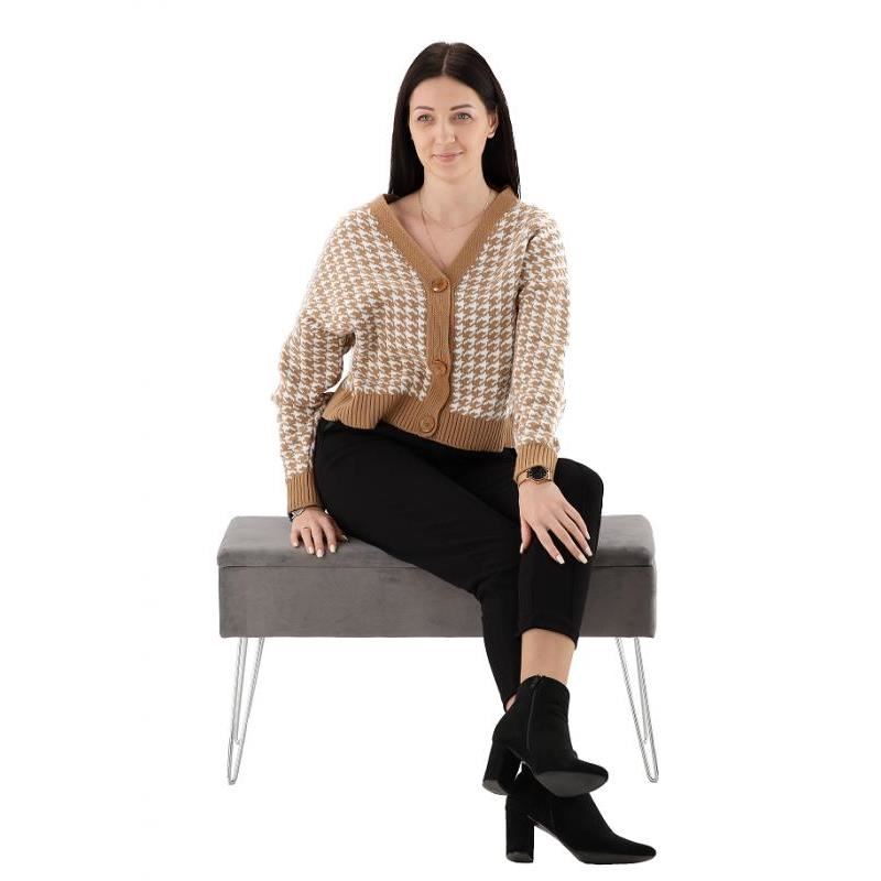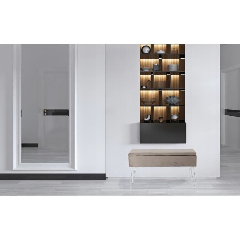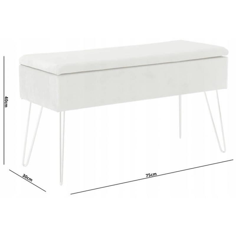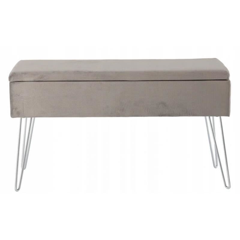 Banca pentru dormitor cu spatiu de depozitare, picioare metal, catifea, gri, 75x30x40 cm