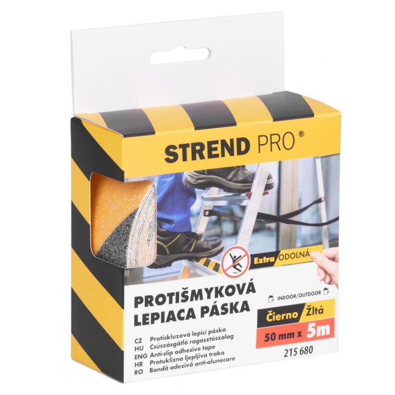 Banda antialunecare, Strend Pro, autoadeziva, extra durabila, 50 mm x 5 m, negru si galben