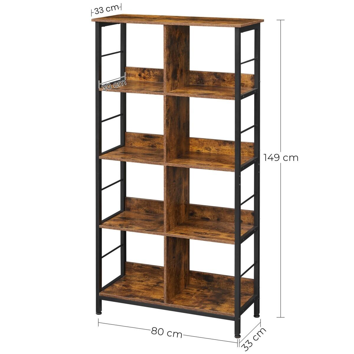 Biblioteca, Artool, pal si metal, 8 rafturi, maro rustic, 80x33x149 cm
