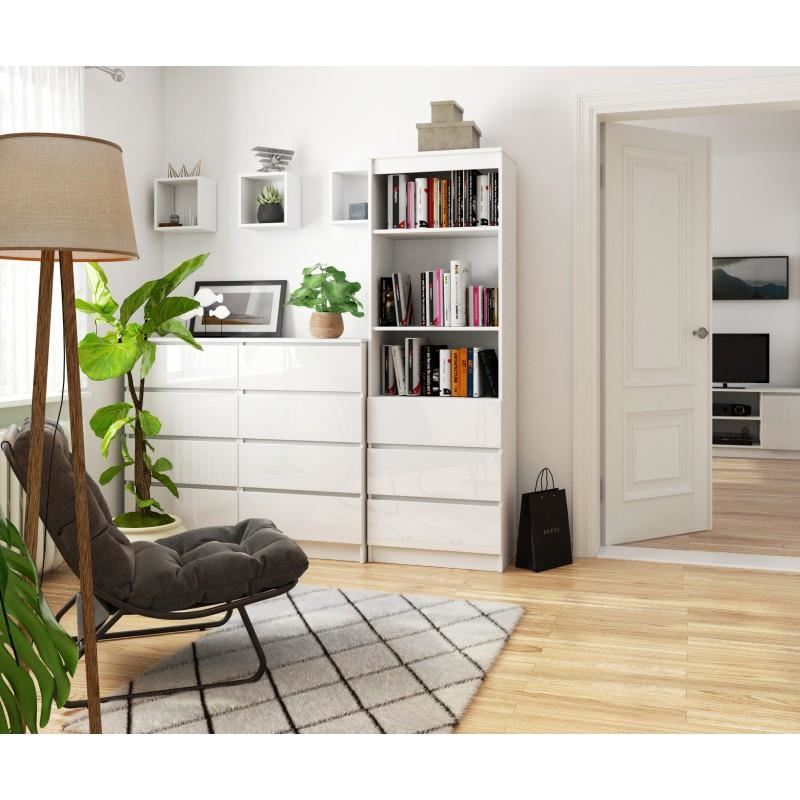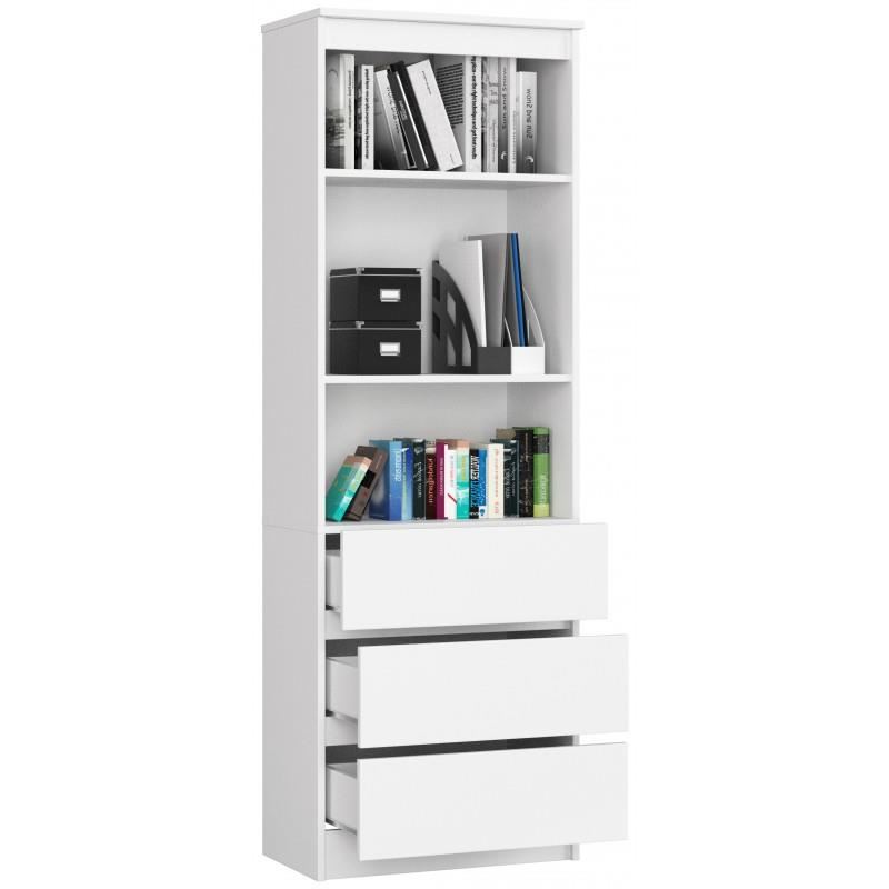 Biblioteca, placa laminata, 3 sertare, 3 rafturi, alb, 60x35x180 cm