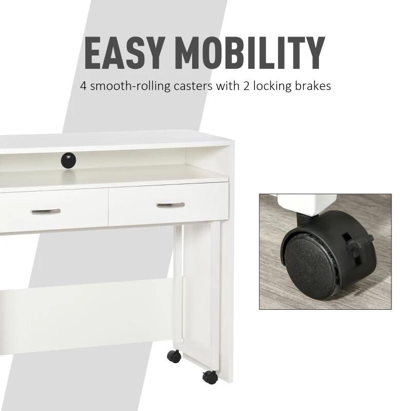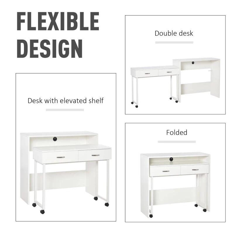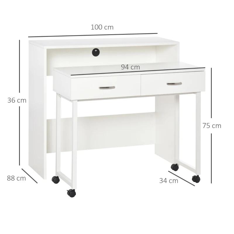 Birou calculator, convertibil, MDF si metal, cu 2 sertare, alb, max 45 kg, 100x36x88 cm