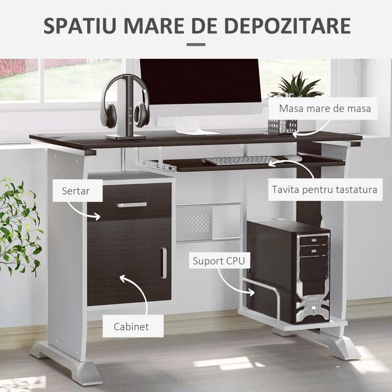 - Spatiu generos de depozitare: Sertarul si dulapul incorporate ofera loc pentru papetarie, carti si accesorii de birou
