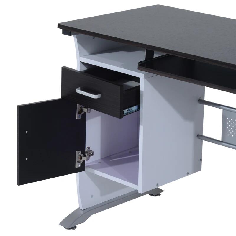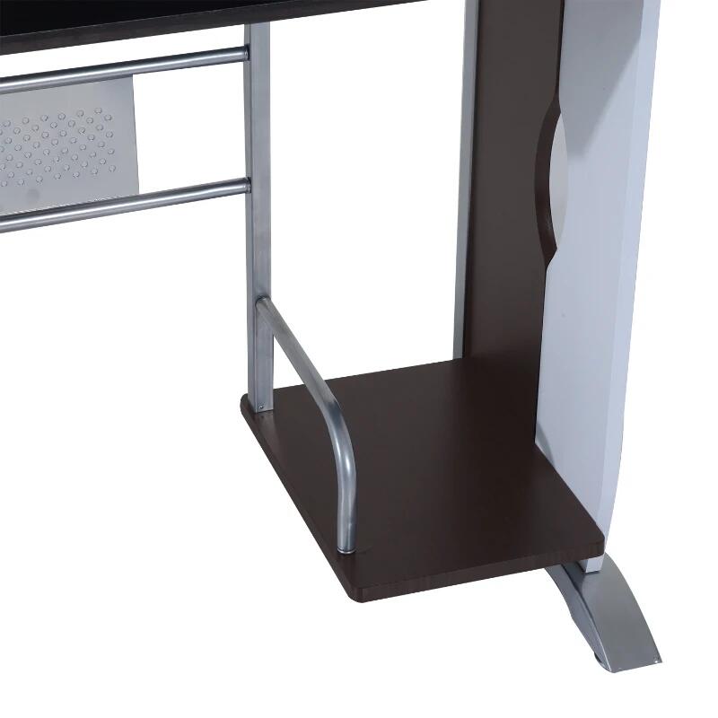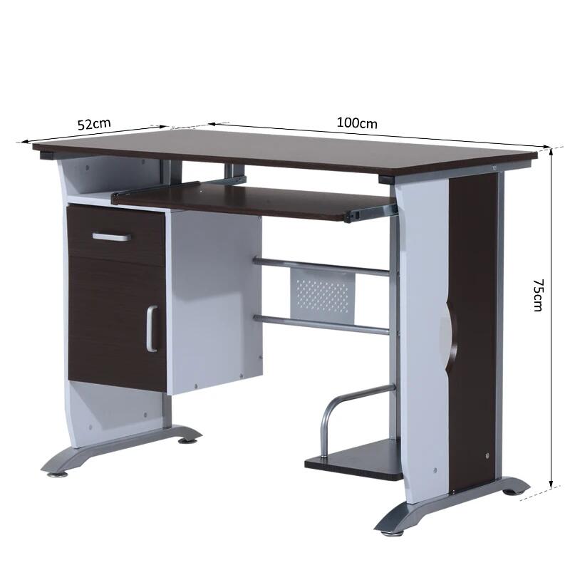 Birou calculator, metal si MDF, cu rafturi pentru tastatura si unitate, sertar, dulap, maro si alb, 100x52x75 cm