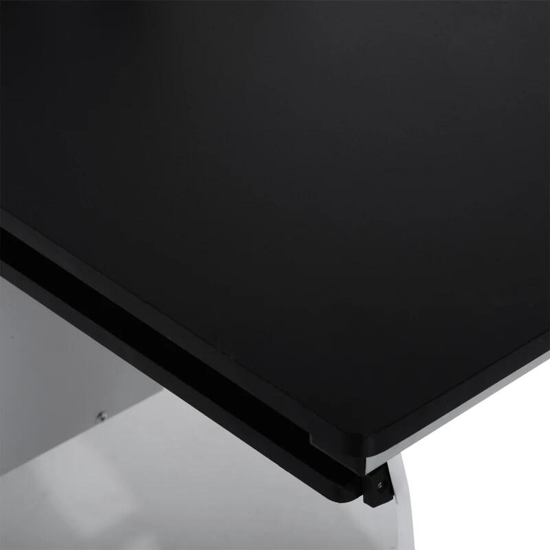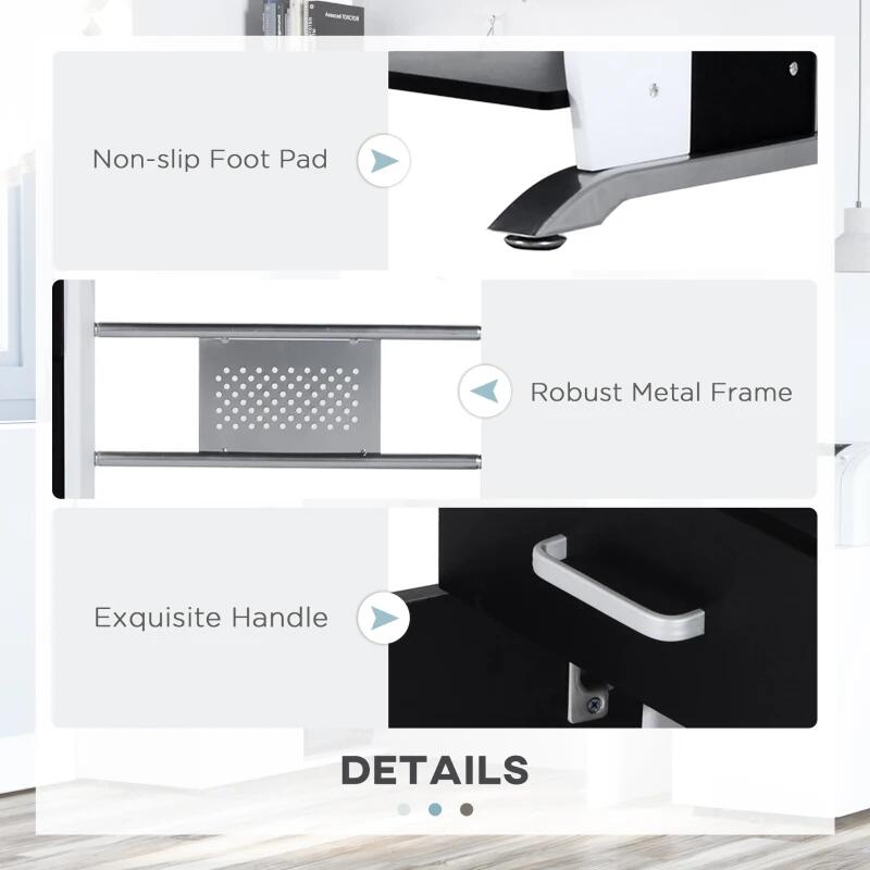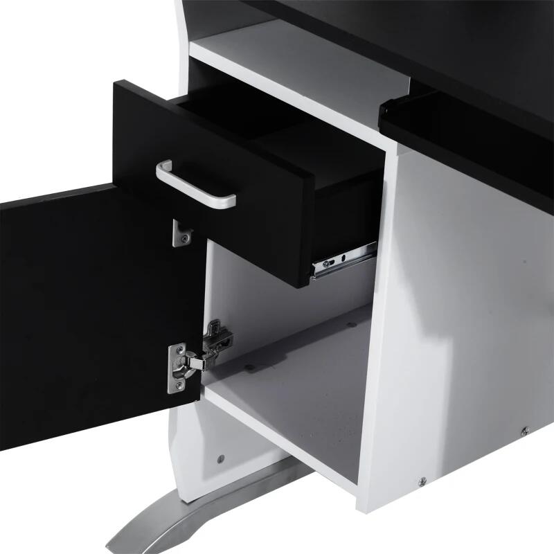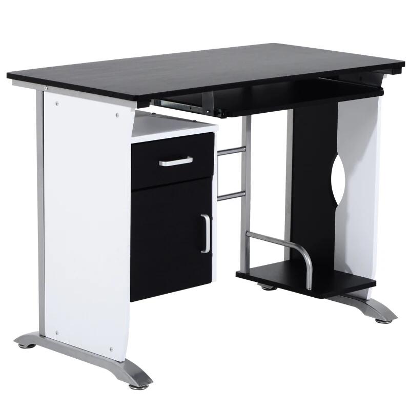 Birou calculator, metal si MDF, cu rafturi pentru tastatura si unitate, sertar, dulap, negru si alb, 100x52x75 cm