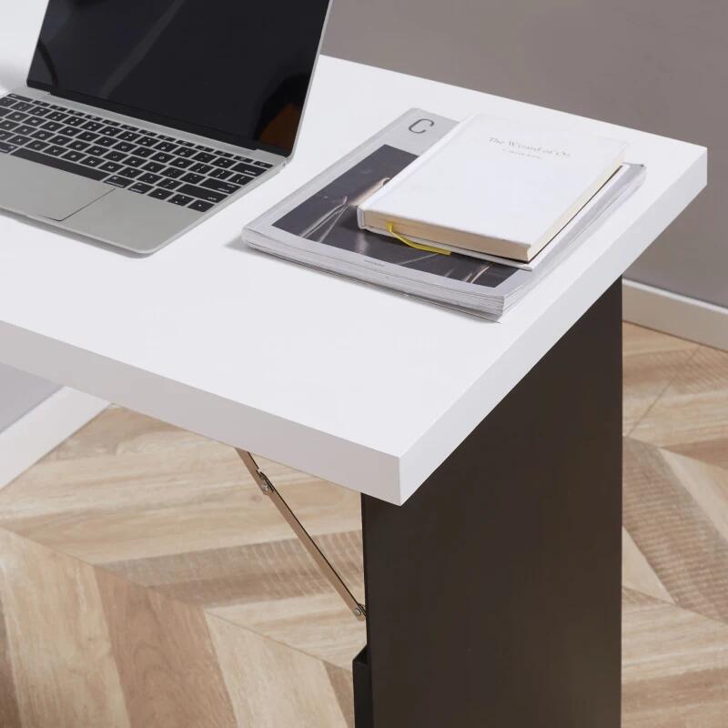 Birou de perete, suspendat, pliabil, MDF, 6 rafturi, alb si negru, max 30 kg, 60x94.5x147 cm