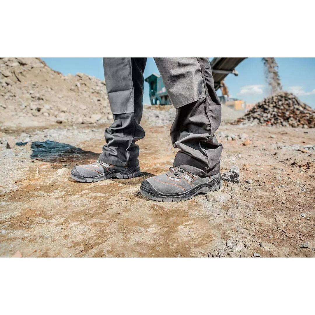 - Clasa de protectie a pantofilor: S1P (bombeu rezistent la impact, talpa anti-derapanta, zona de acoperire a calcaiului inchisa, absorbtia energiei in zona calcaiului, proprietati antistatice, talpa rezistenta la penetrare)