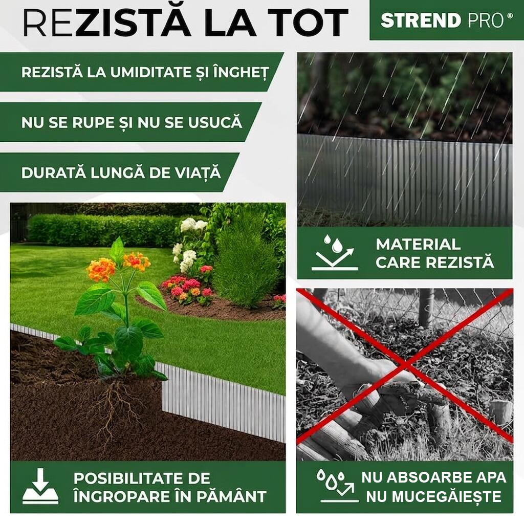 - Stabilitate superioara: Inaltimea de 200 mm previne extinderea ierbii si deplasarea materialelor