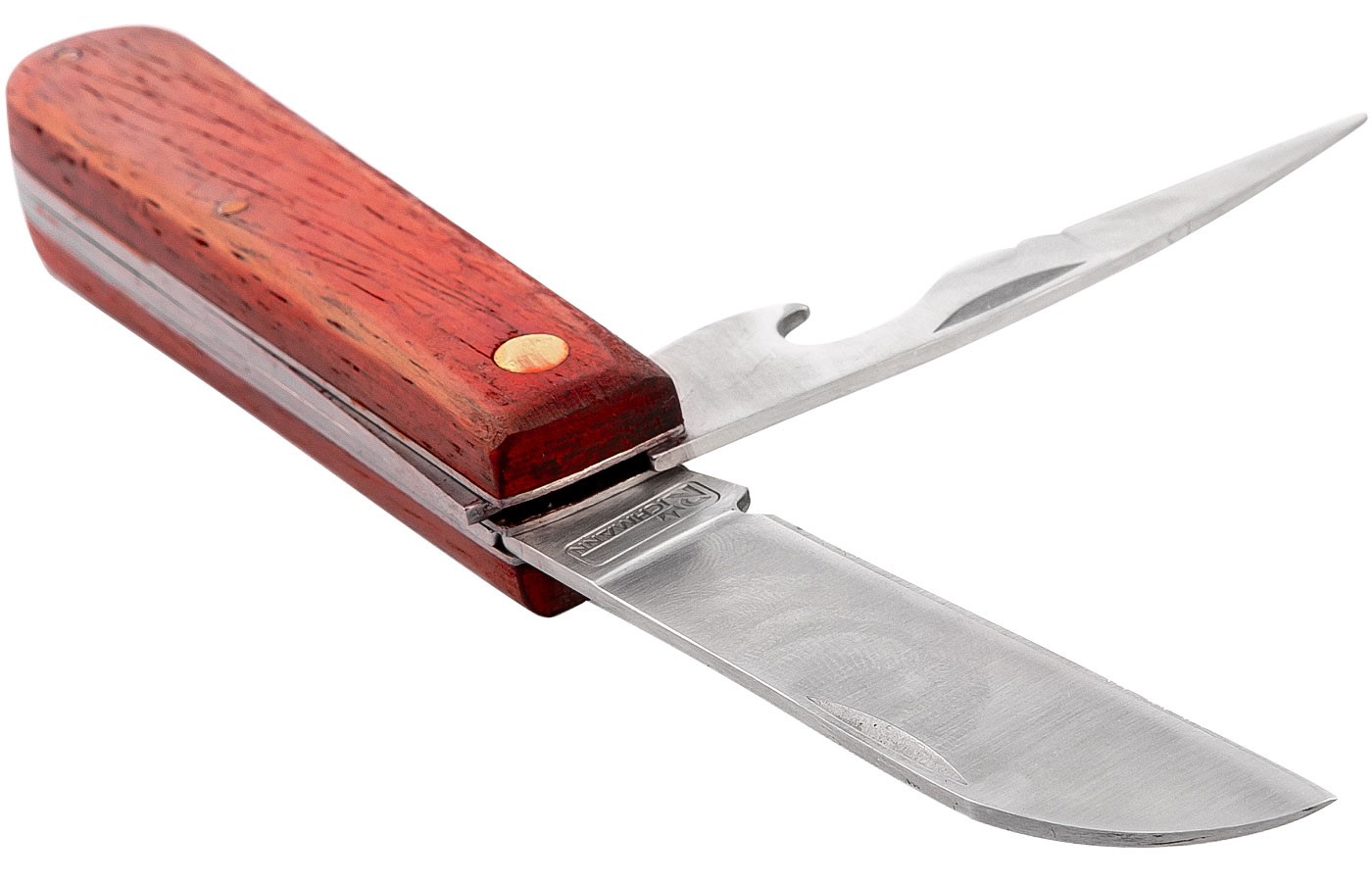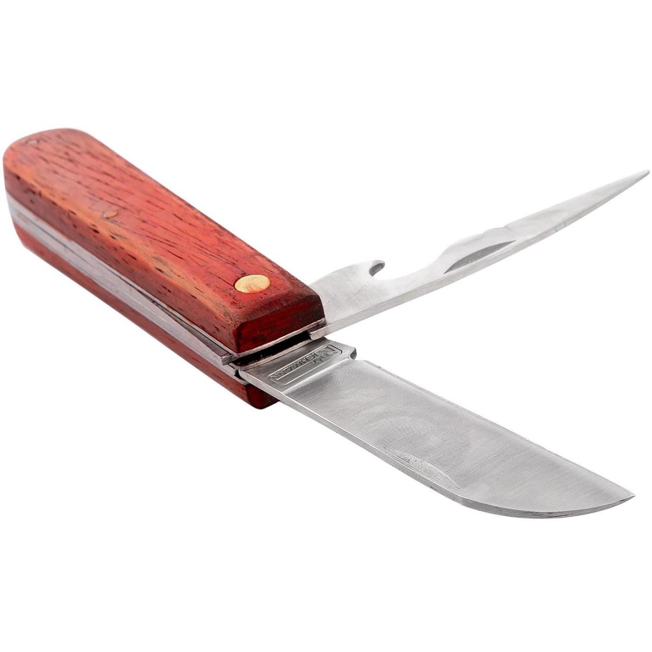Prima lama este neteda si are functia de cutit iar cea de doua lama are functia de deschizator rabatabil.