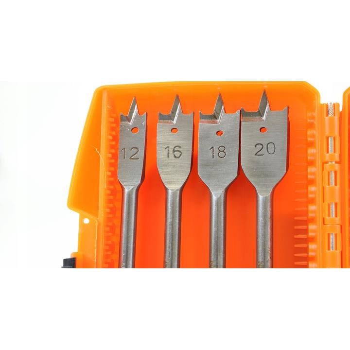 Setul contine burghie plate pentru lemn de urmatoarele dimensiuni: 12, 16, 18, 20, 22, 25, 28, 32 mm.