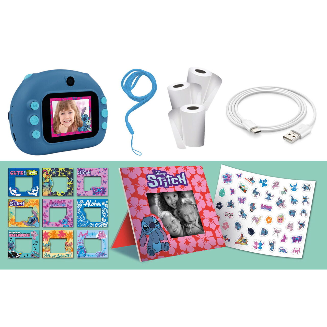 - inspirata de personajul indragit Stitch, aceasta camera foto combina distractia cu tehnologia moderna, oferind posibilitatea de a face fotografii si de a le imprima instant cu efecte jucause si rame tematice