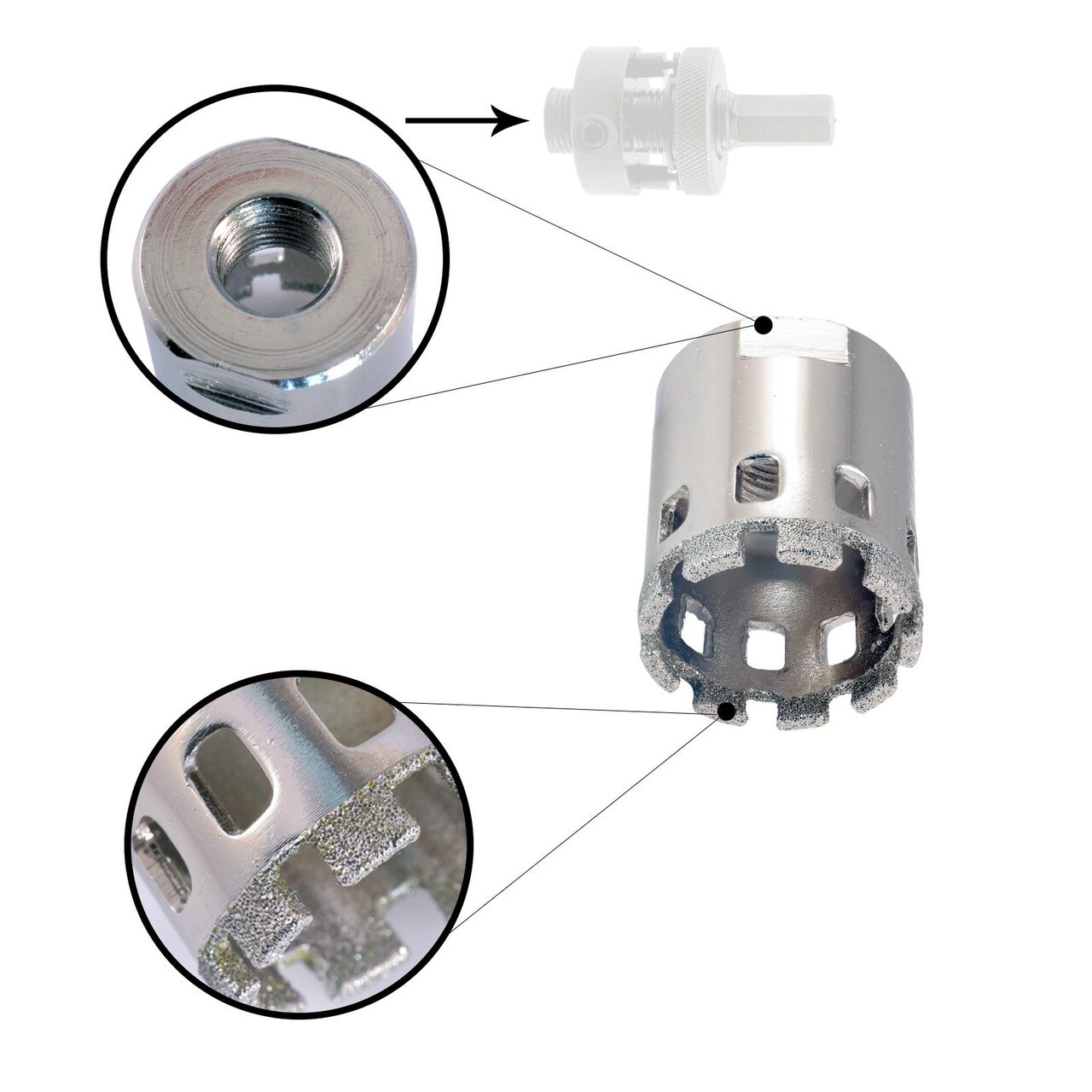 * Cu carotete diamantate vacuum brazate poti obtine o gaura CURATA si PRECISA fara margini sparte.