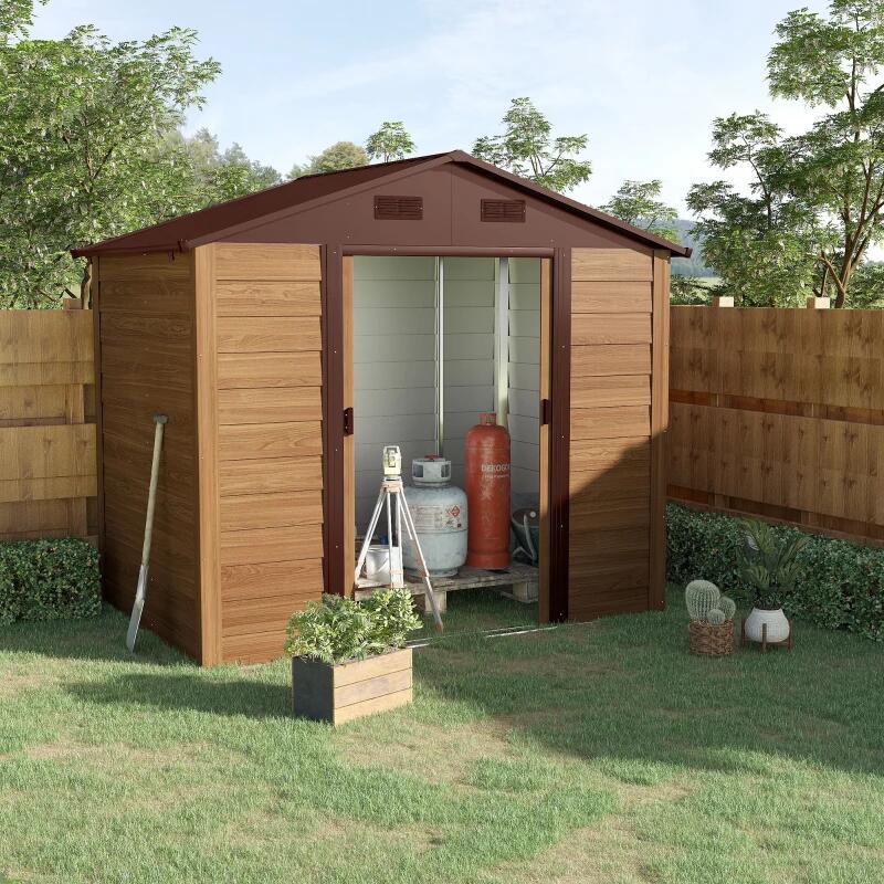 Casuta/magazie/sopron de gradina pentru depozitare unelte, otel si PP, efect lemn maro, 236x152x209 cm