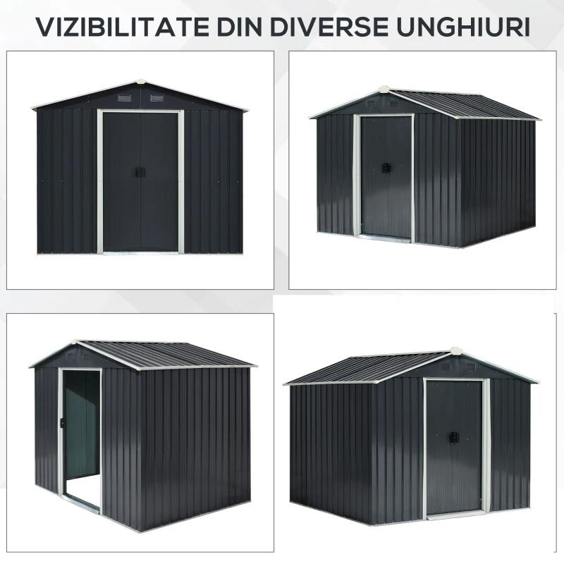 - Dispune de doua usi glisante pentru acces facil in interior, corespunzator cu spatiul larg pe care magazia il ofera.