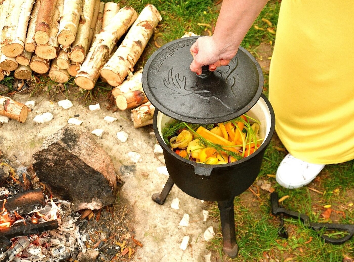 Cazanul de vanatoare este un aliat de lunga durata al tuturor camperilor care intentioneaza sa-si pregateasca mesele cu ajutorul caldurii focului de tabara.