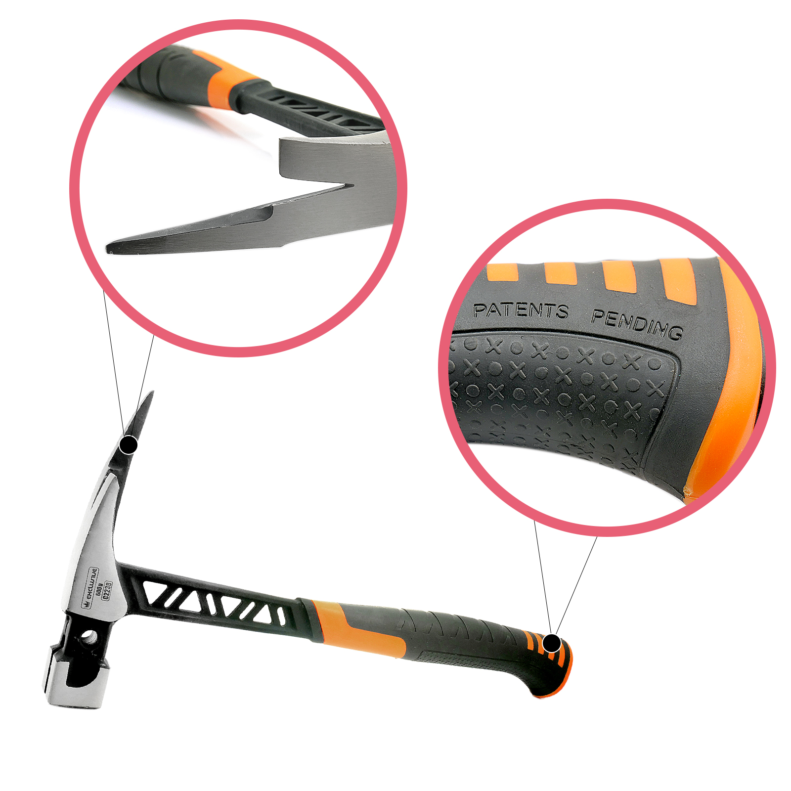- Cap din otel de INALTA calitate prevazut cu o gaura special proiectata ce contine un MAGNET PUTERNIC ce poate tine cuiele in timpul lucrului pentru a permite lucrul cu o SINGURA mana, putand lucra cu ciocanul si in locurile mai INCOMODE.