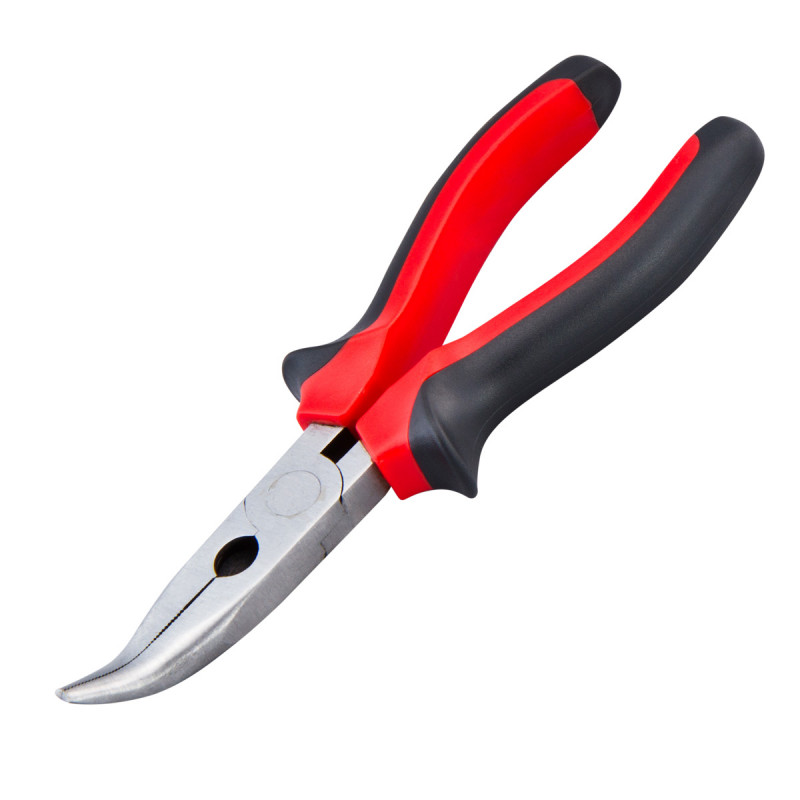Cleste mini cu varf curbat pentru lucrul cu elemente mai mici in locuri greu accesibile. Manerul este acoperit cu un strat de cauciuc, de forma ergonomica.