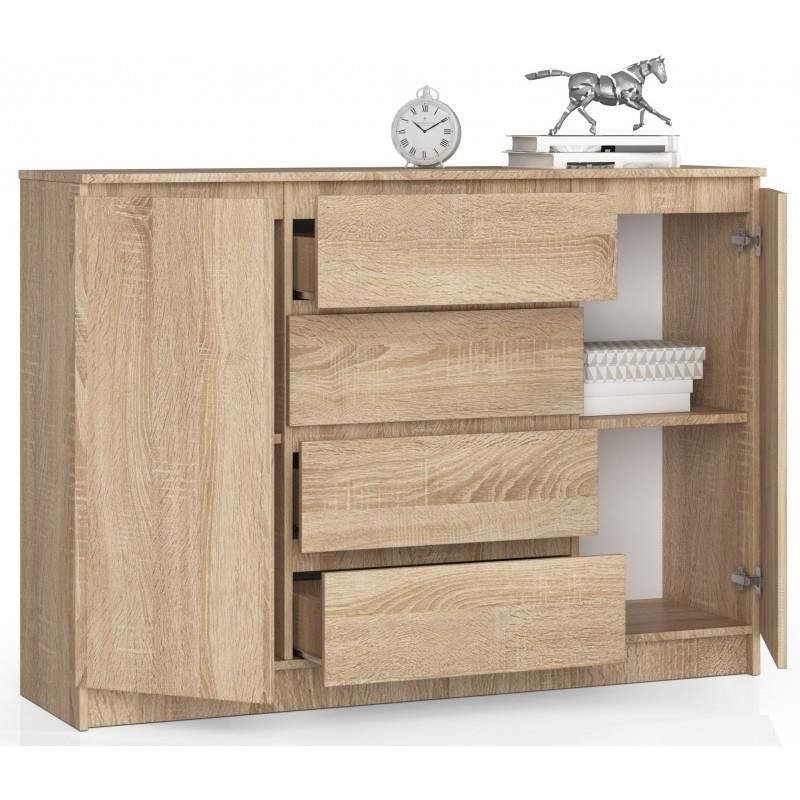 Comoda, placa laminata, 4 sertare, 4 rafturi, stejar, 138x40x99 cm