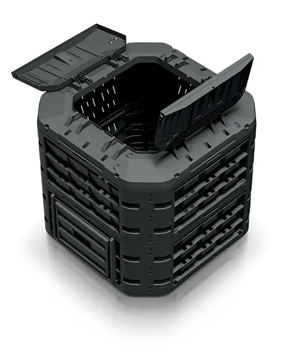 - Usurinta in utilizare: Designul modular asigura o asamblare usoara si permite accesul usor la interior pentru adaugarea de material si extragerea compostului finit