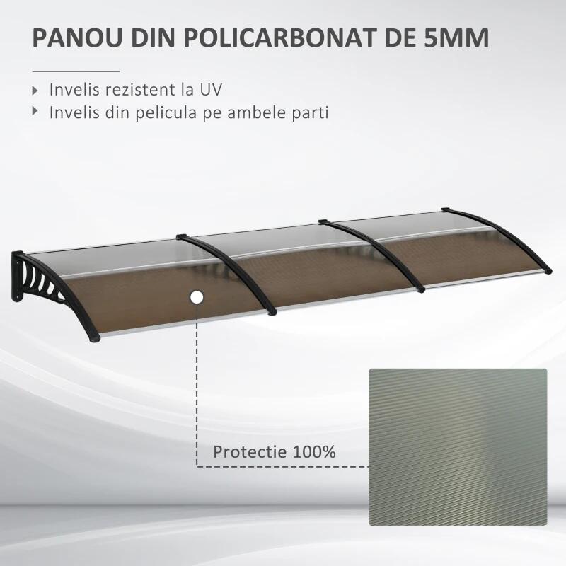 Copertina marchiza, policarbonat si aluminiu, maro, 300x96x27 cm