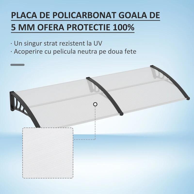 Copertina marchiza, policarbonat si aluminiu, transparent, 195x75x23 cm