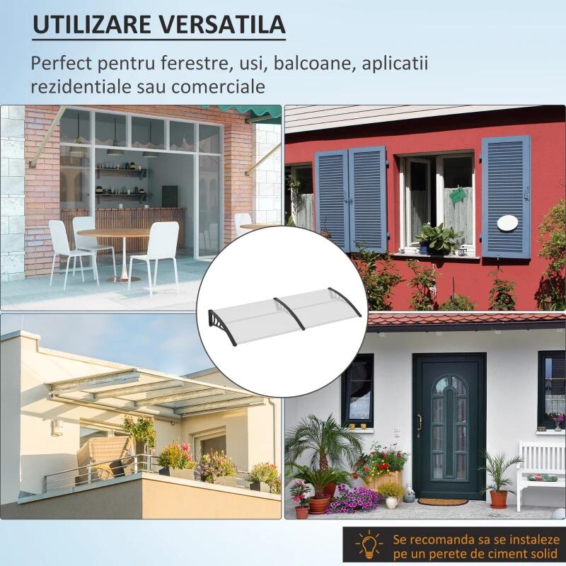 Acest produs este ușor de instalat și permite luminii naturale să pătrundă în timp ce oferă protecție împotriva razelor UV dăunătoare. Cu un design simplu și modern, acest acoperiș se integrează perfect în orice stil de amenajare.