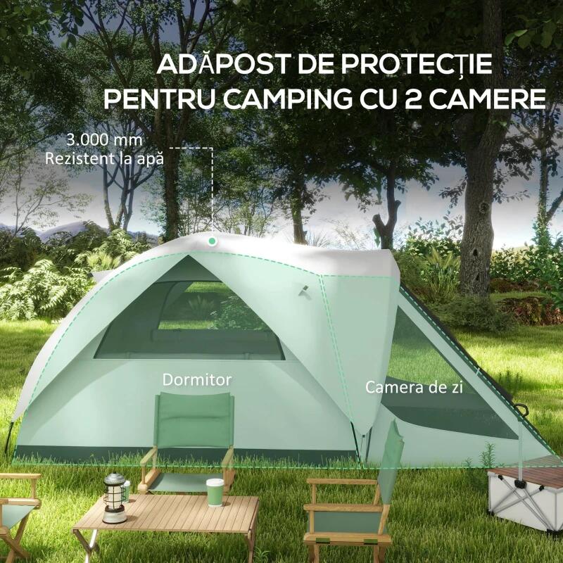 - Spatiu generos: Ofera suficient spatiu pentru 4 persoane, cu o zona separata de dormit si una de tip vestibul