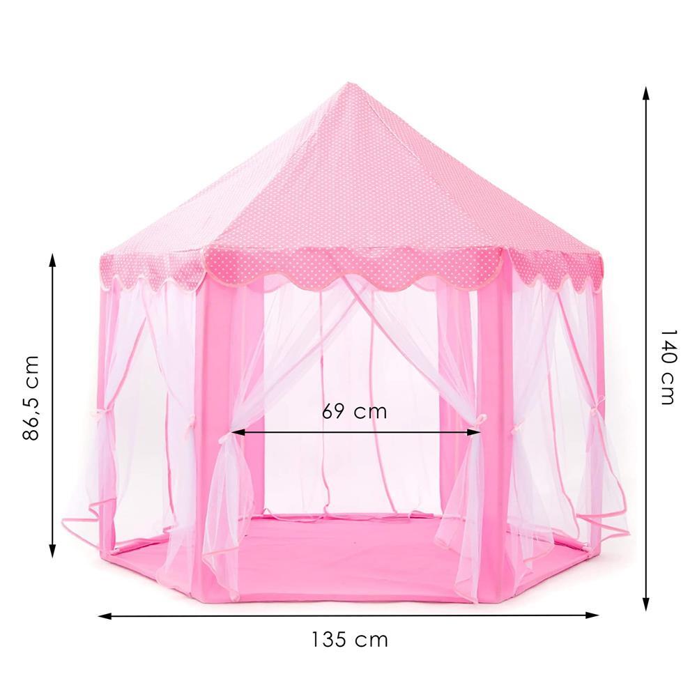 Cort de joaca pentru copii, Springos, hexagonal, cu perdele, roz, 135x140 cm