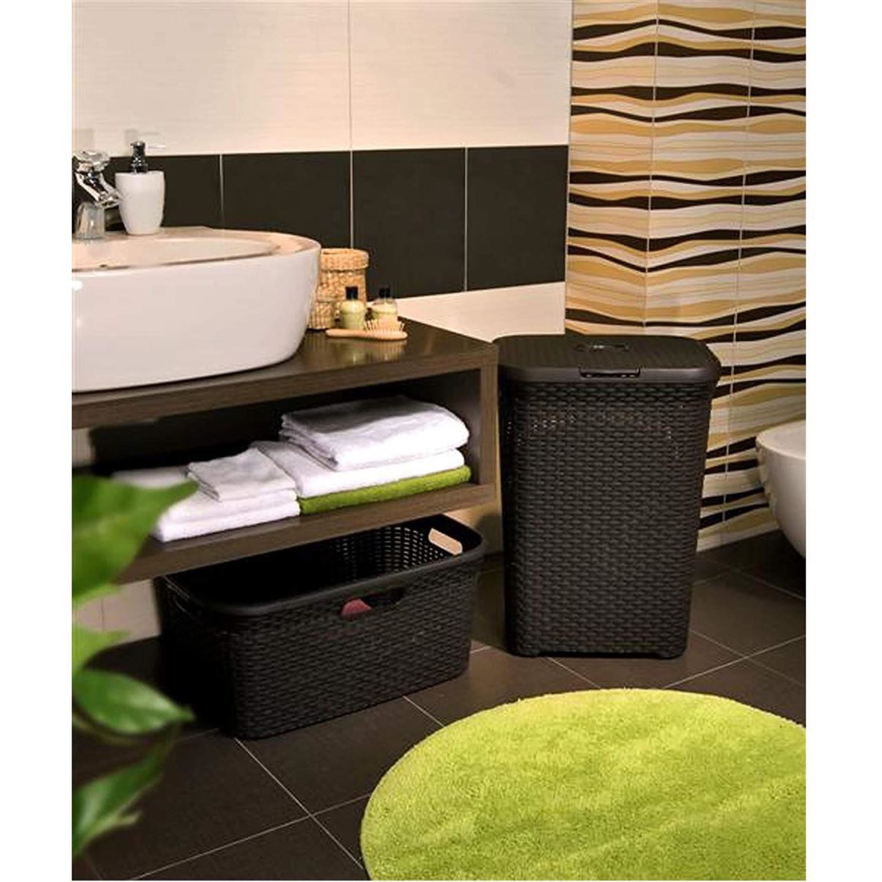 Cos rufe, 2 manere, capac, maro inchis, 60 L, 44x34x61 cm, Curver