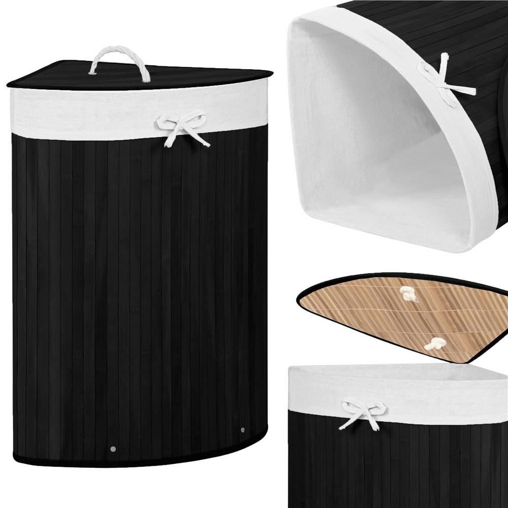 Cos rufe, de colt, bambus, negru, 73 L, 47x60 cm, Springos