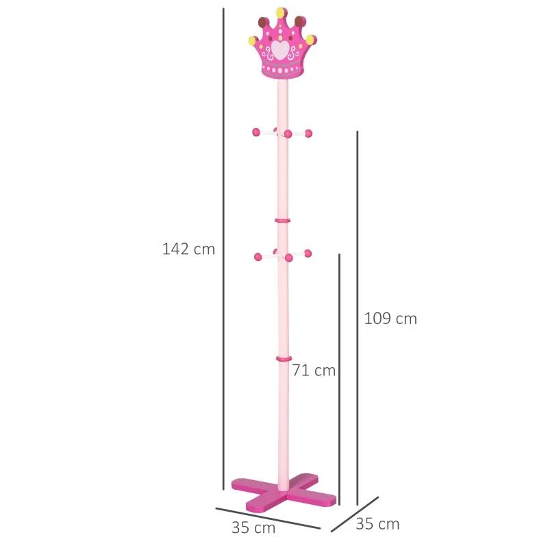 - Colorat in roz si decorat cu o coronita in varf, acest cuier se va potrivi cu siguranta de minune in camera unei fetite sau pe hol. Aspectul sau se imbina usor cu decoratiunile si jucariile colorate din camerele de copii, iar inaltimea este corespunzatoare pentru cei mici.