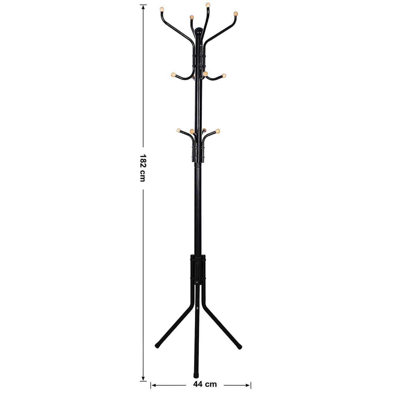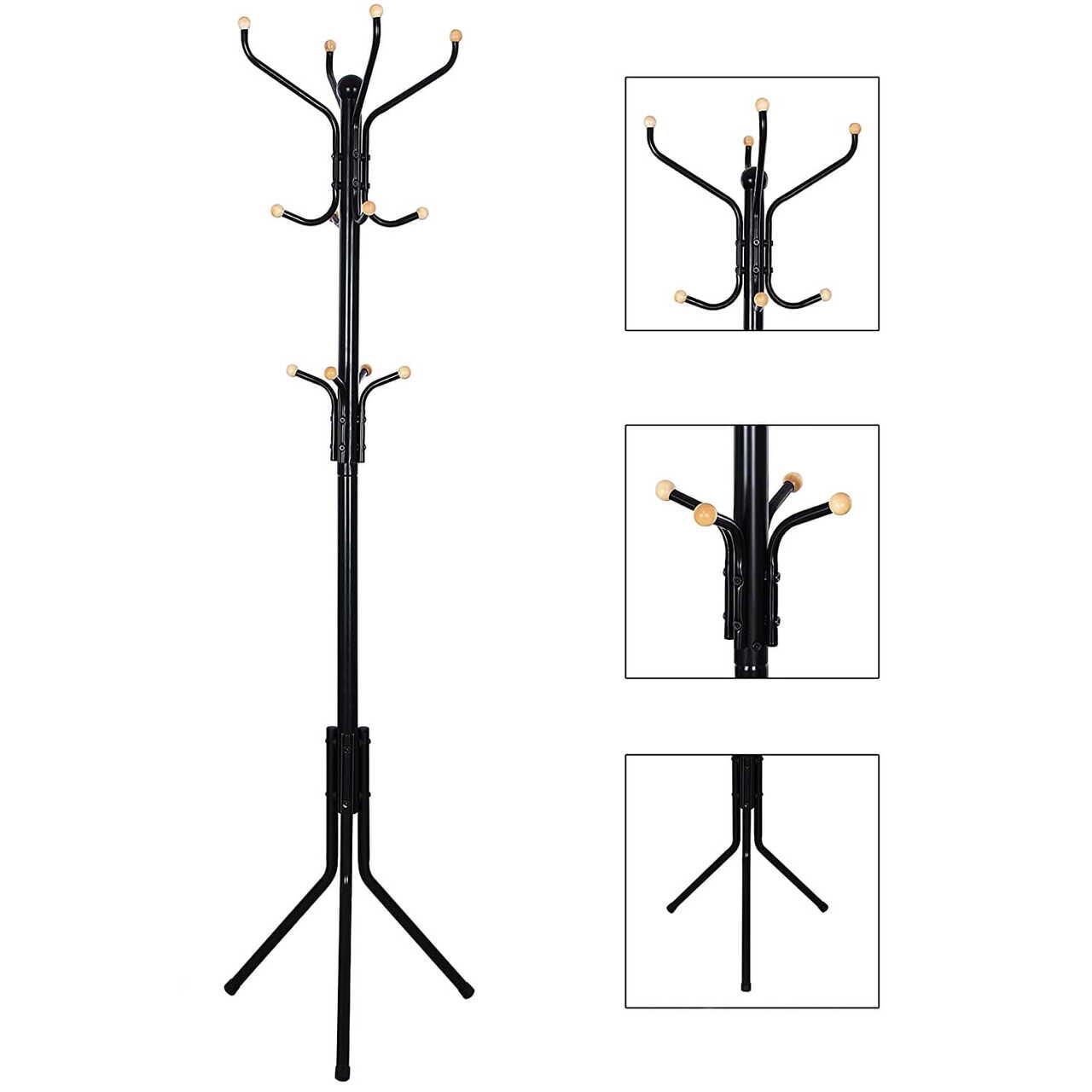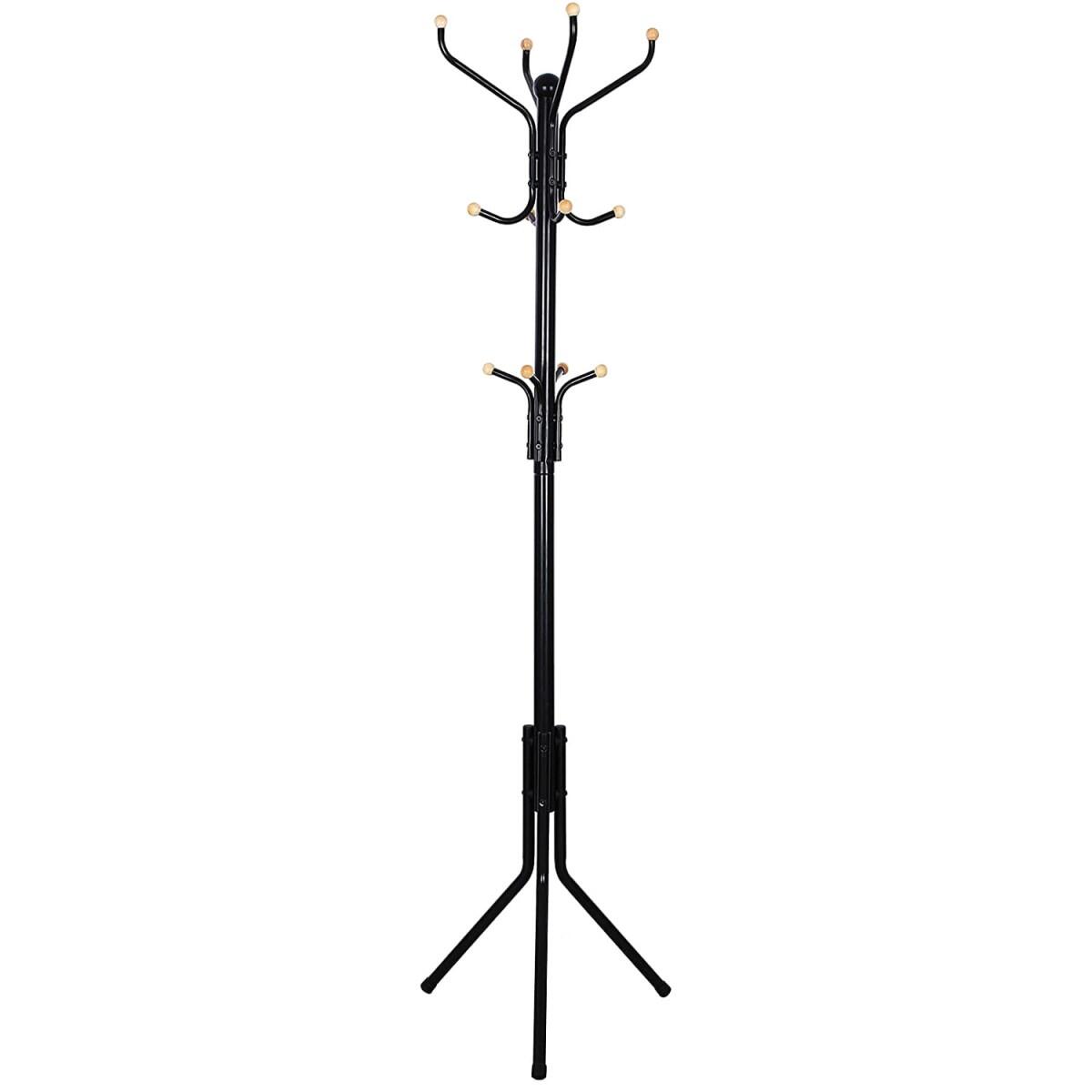 - Acest produs care economiseste spatiu are o baza stabila pentru trepied, datorita careia putem fi siguri ca produsul nu se va inclina odata cu sarcina suplimentara. In plus, produsul este echipat cu 12 carlige rotunjite pentru depozitarea paltoanelor, jachetelor, gentilor sau esarfelor si palariilor.