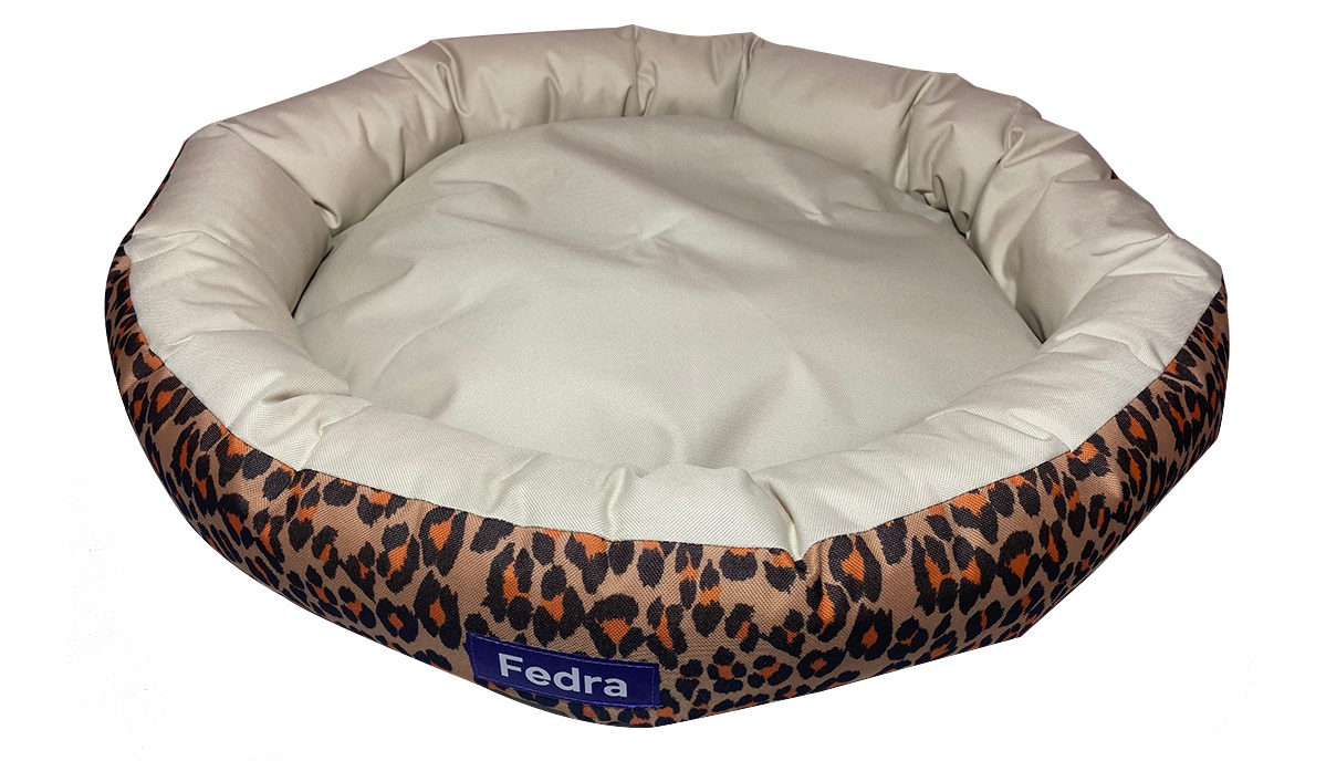 Culcus pentru caine/pisica, crem cu margini animal print, impermeabil, 77 cm