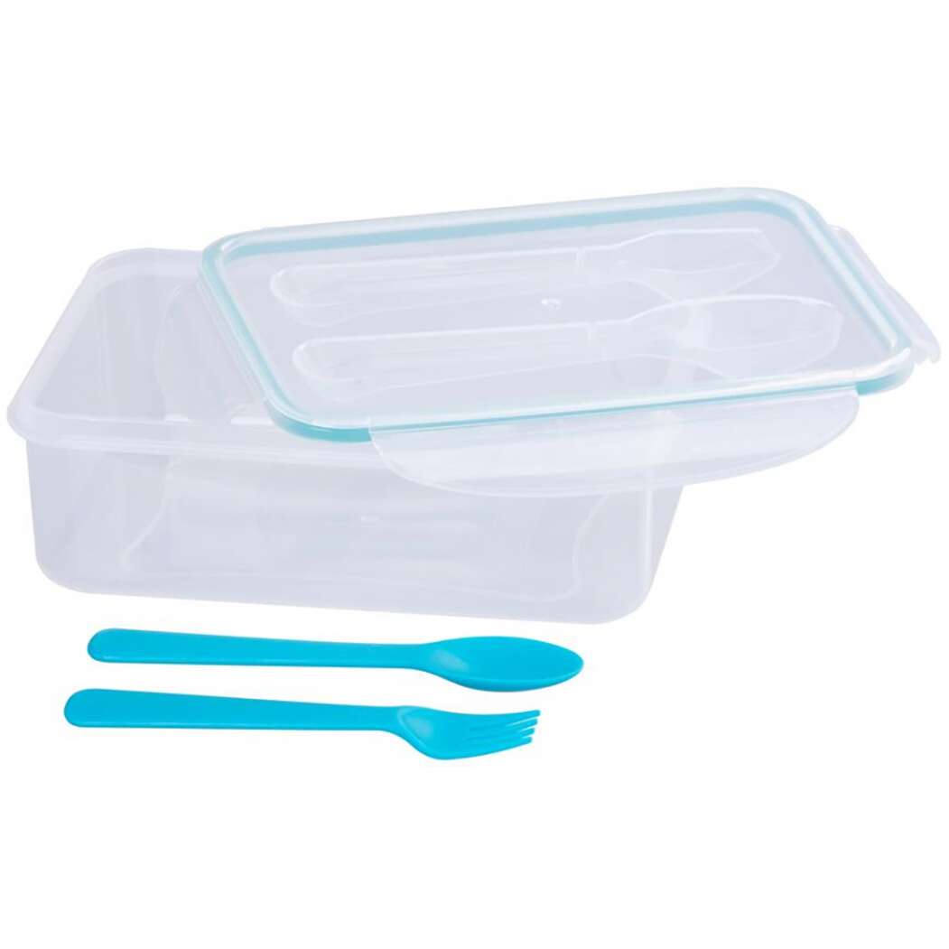 Cutie/caserola alimente, plastic, etansa, albastru, 1 compartiment, cu lingura si furculita, 1.5 L, 22x15.2x7.6 cm, MagicHome