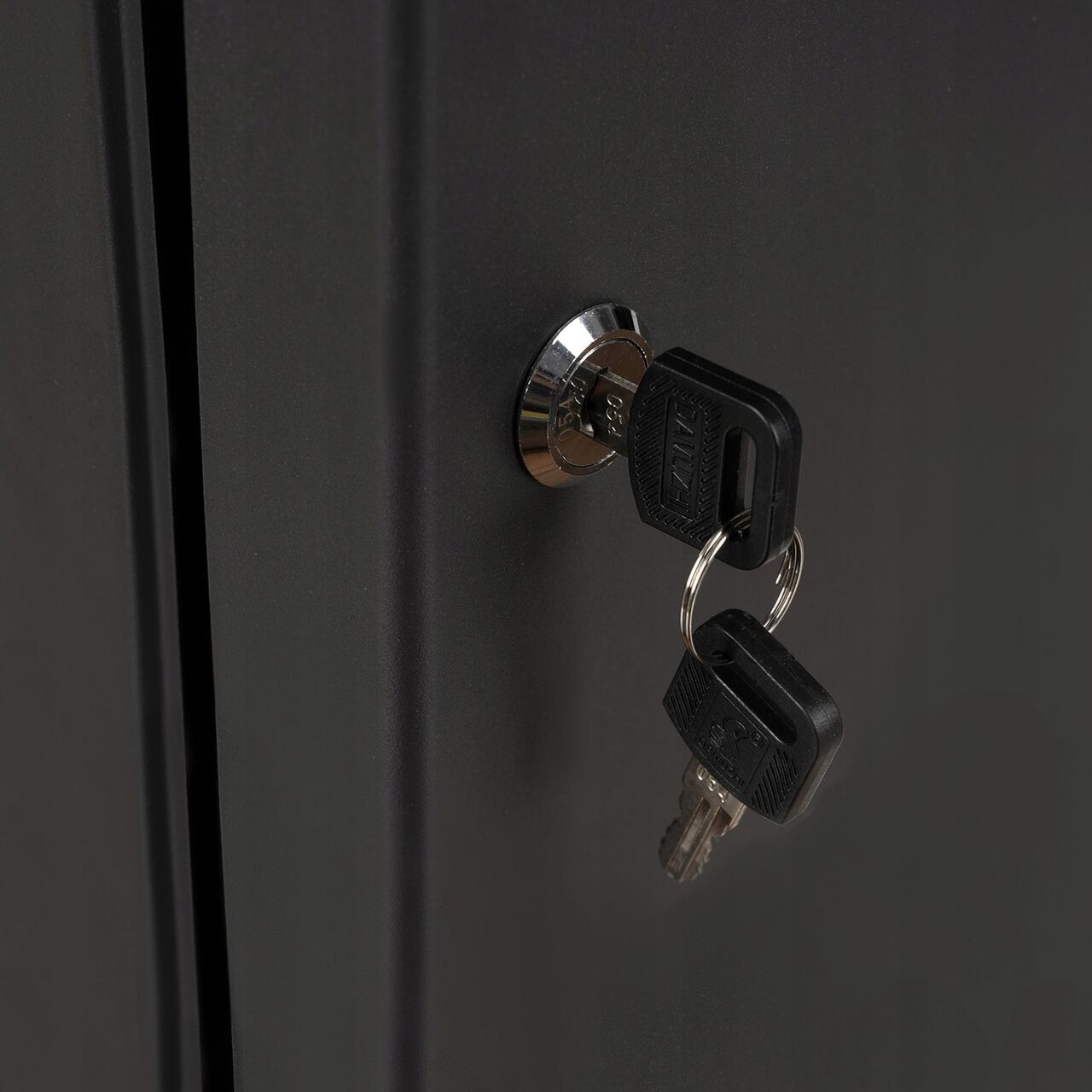 - Cutia poate fi incuiata cu ajutorul uneia dintre cele doua chei puse la dispozitie in set. Astfel, cheile depozitate vor ramane mereu in siguranta.