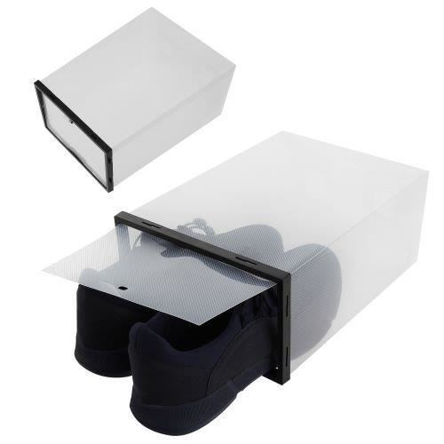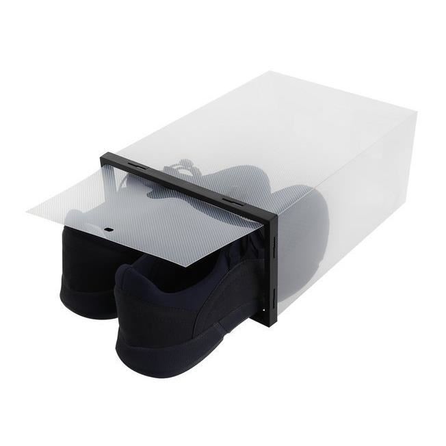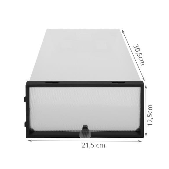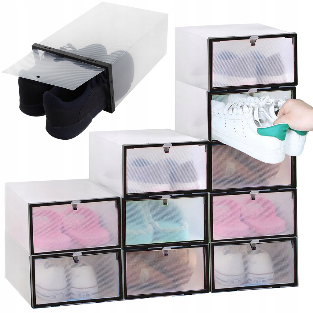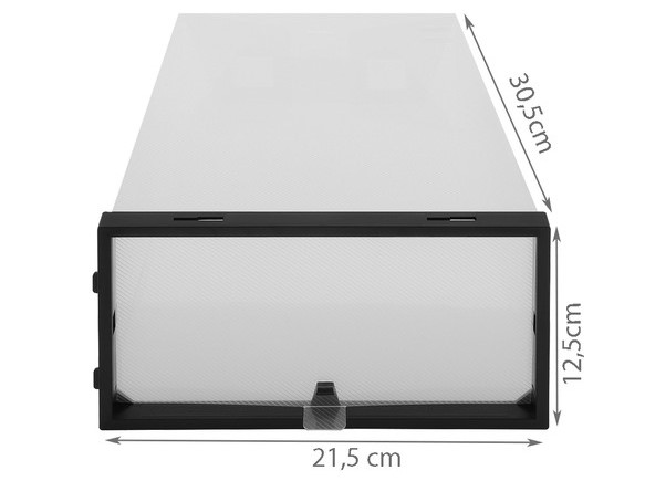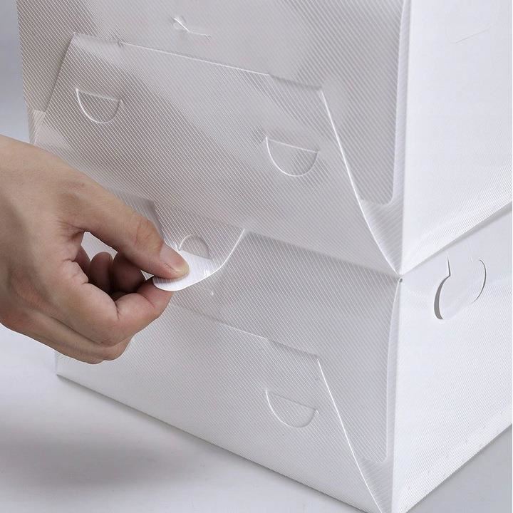 - CAPAC TRANSPARENT - cutiile sunt inchise din fata cu un capac transparent, datorita caruia nu trebuie sa deschideti fiecare pachet in cautarea pantofior. Puteti vedea clar ce pereche de pantofi este inauntru.