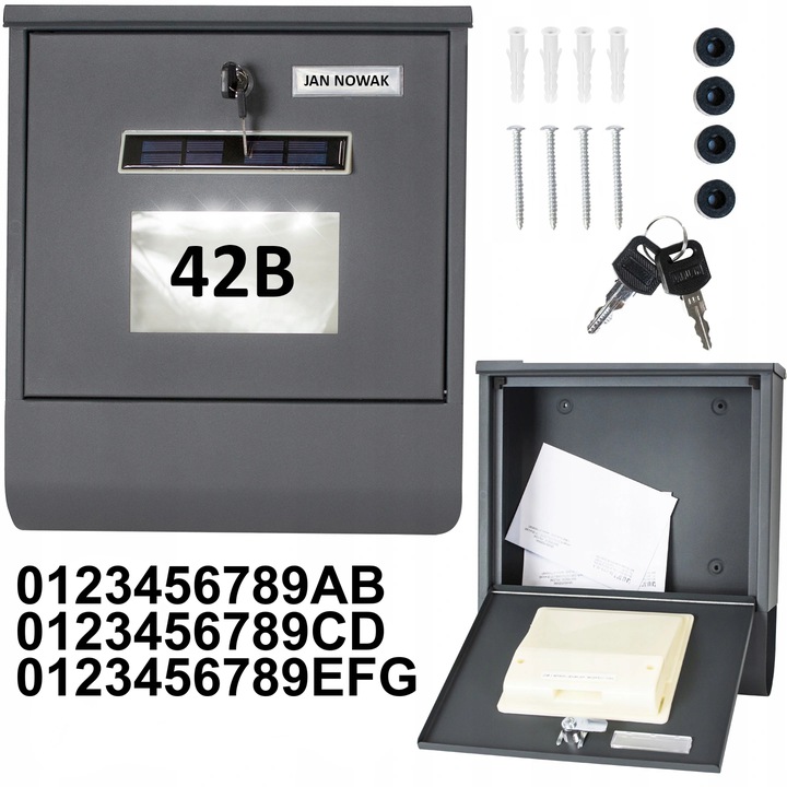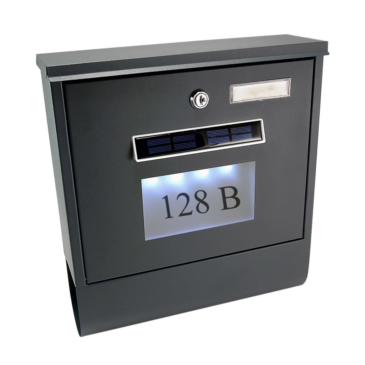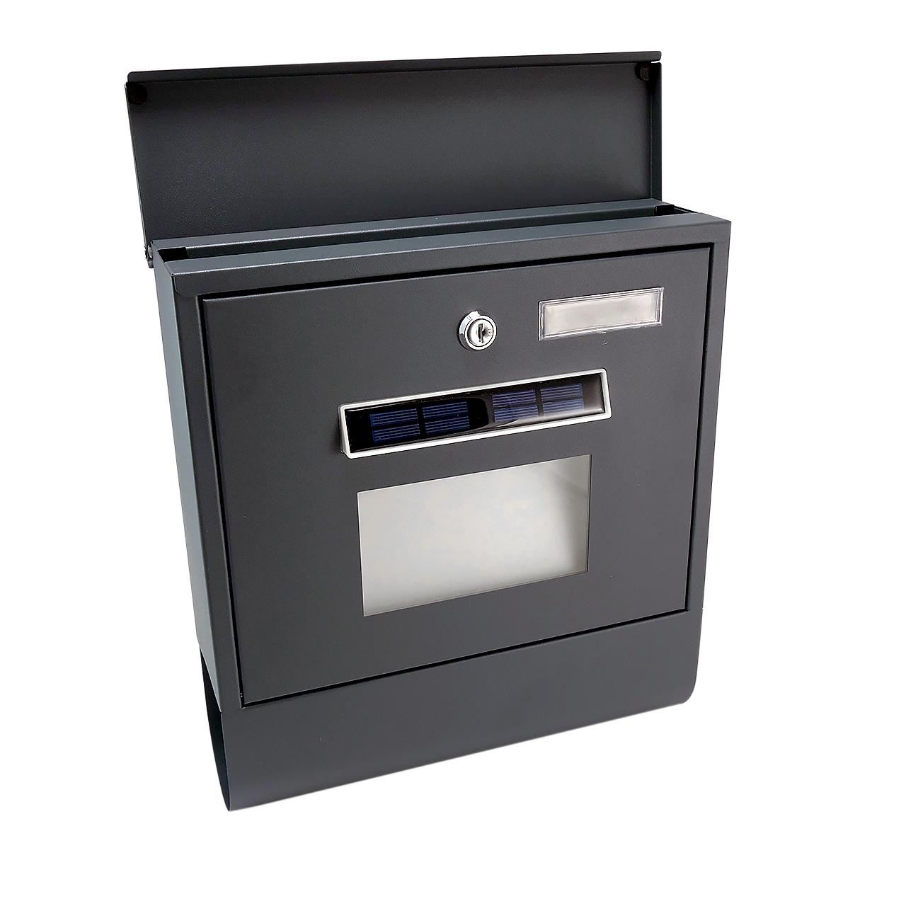 Cutie postala cu LED solar, numar de casa, suport ziar, culoare antracit, 33x36.5x12.5 cm