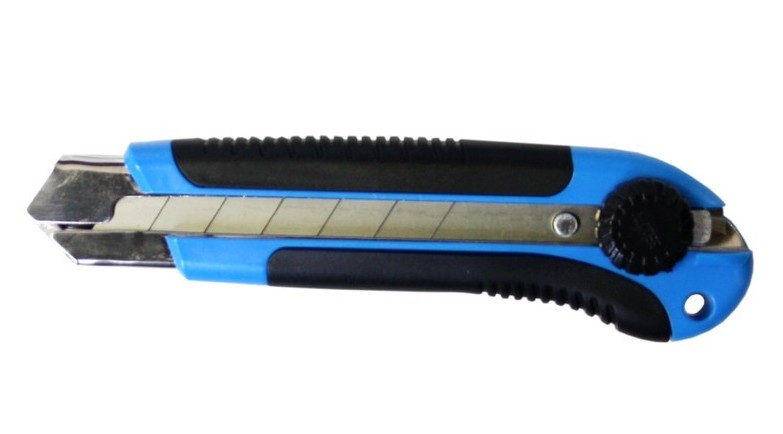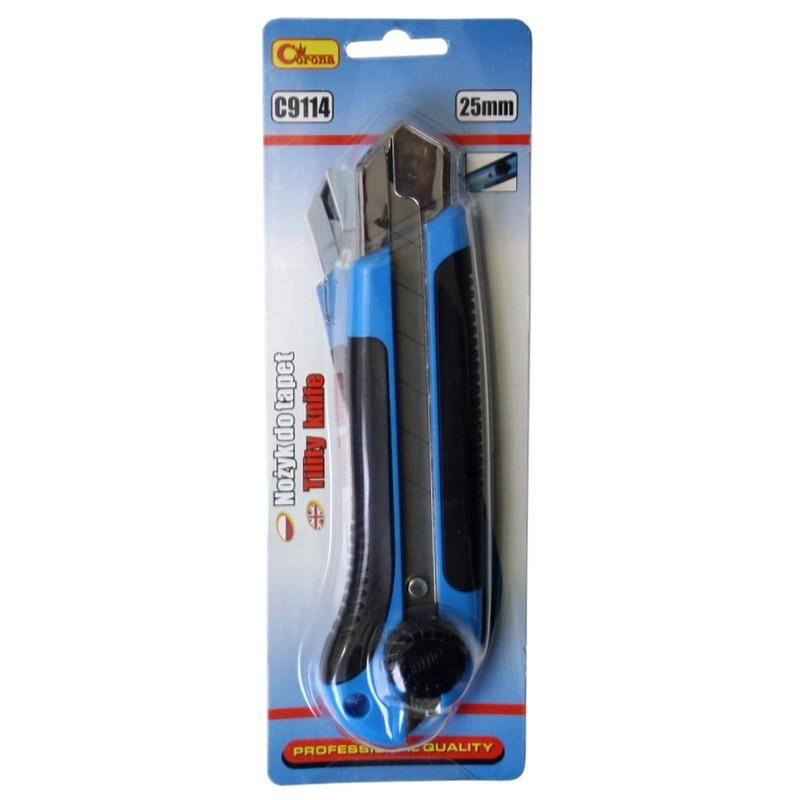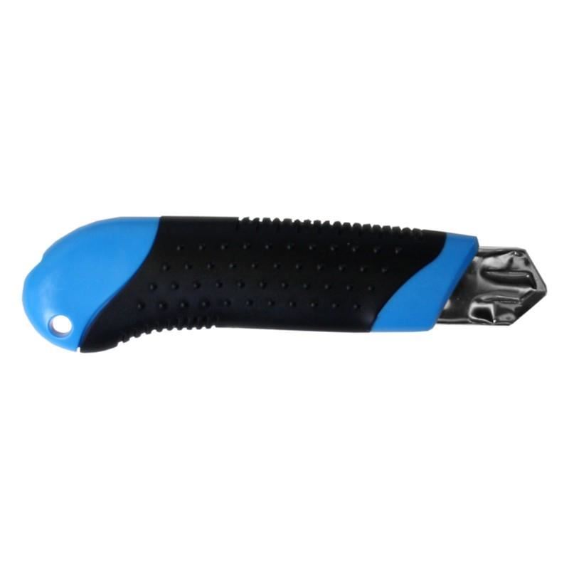 Cutit universal cu lame inlocuibile cu latime de 25 mm, corp din otel, maner ergonomic din plastic cu cauciuc antiderapant, opritor rotativ de blocare a lamei.
