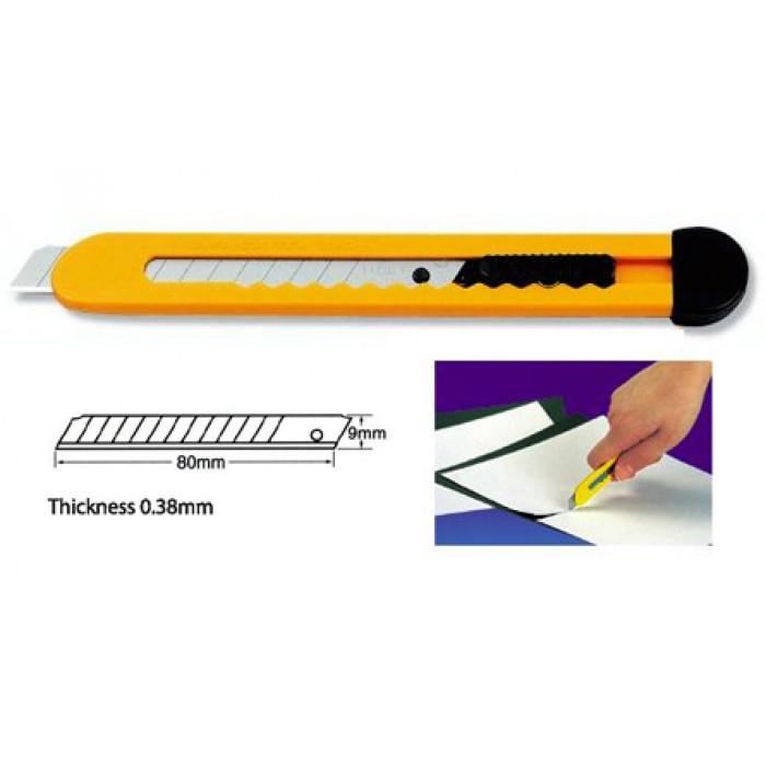 Olfa SPC-1 Cutter este un taietor standard ieftin, vine preincarcat cu o lama de prindere de 9 mm (AB) intr-un maner robust din plastic cu o lama glisanta din metal, clema de buzunar. Ideal pentru comertul cu ambalaje auto.