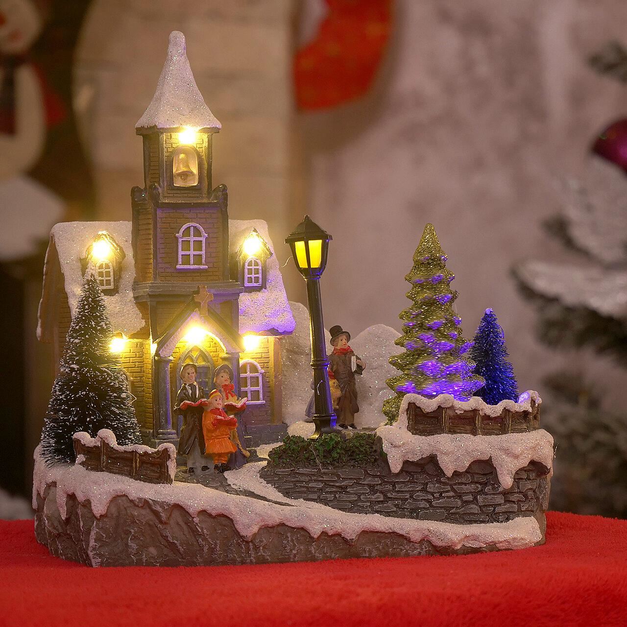 Decoratiune Craciun, Biserica cu 8 LED-uri, 20x15x20 cm