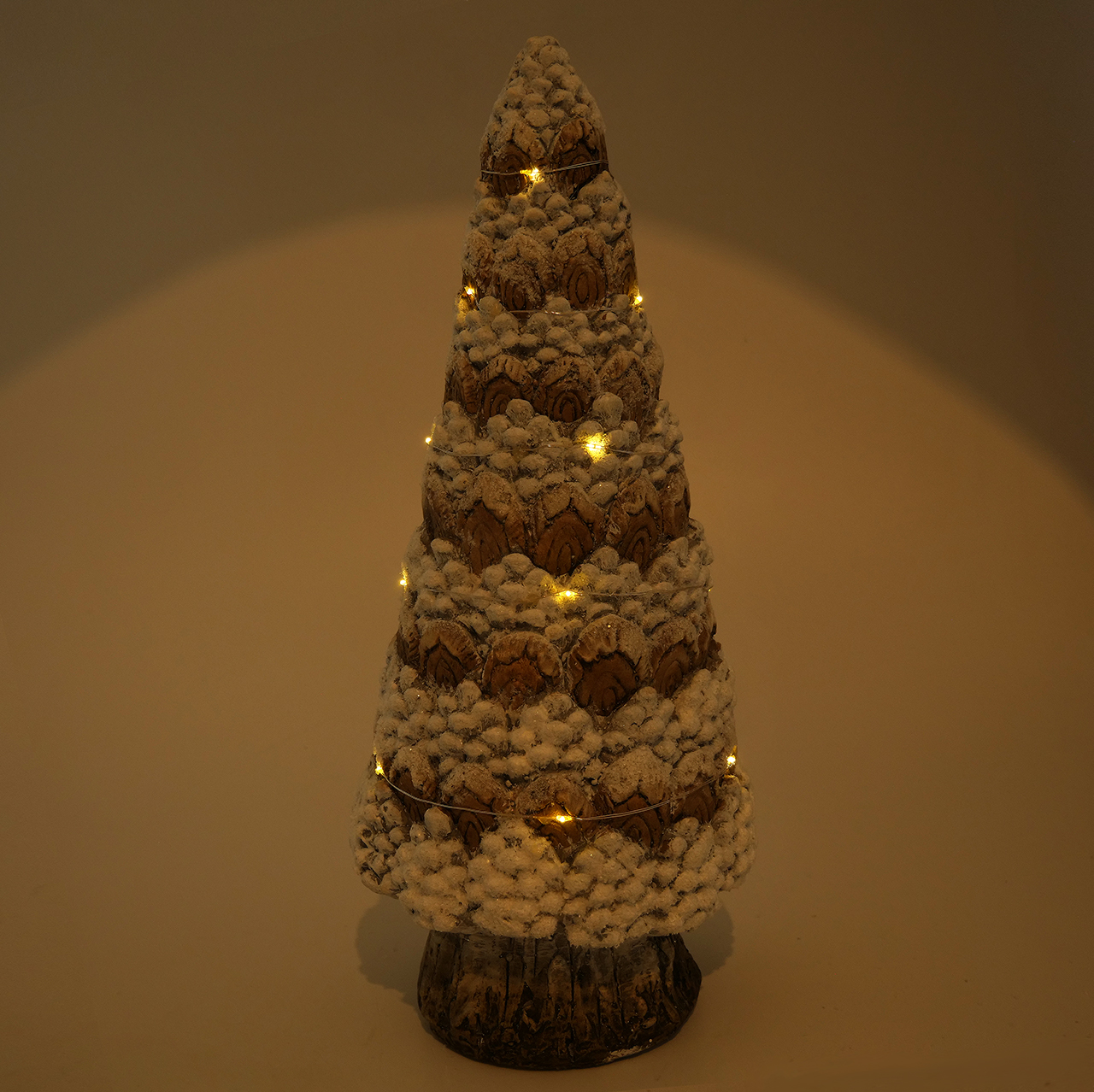 Decoratiune Craciun, ceramica, brad, alb si maro, LED, 3xAA, 17.5x17.5x42 cm